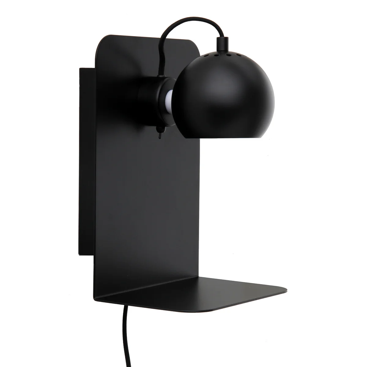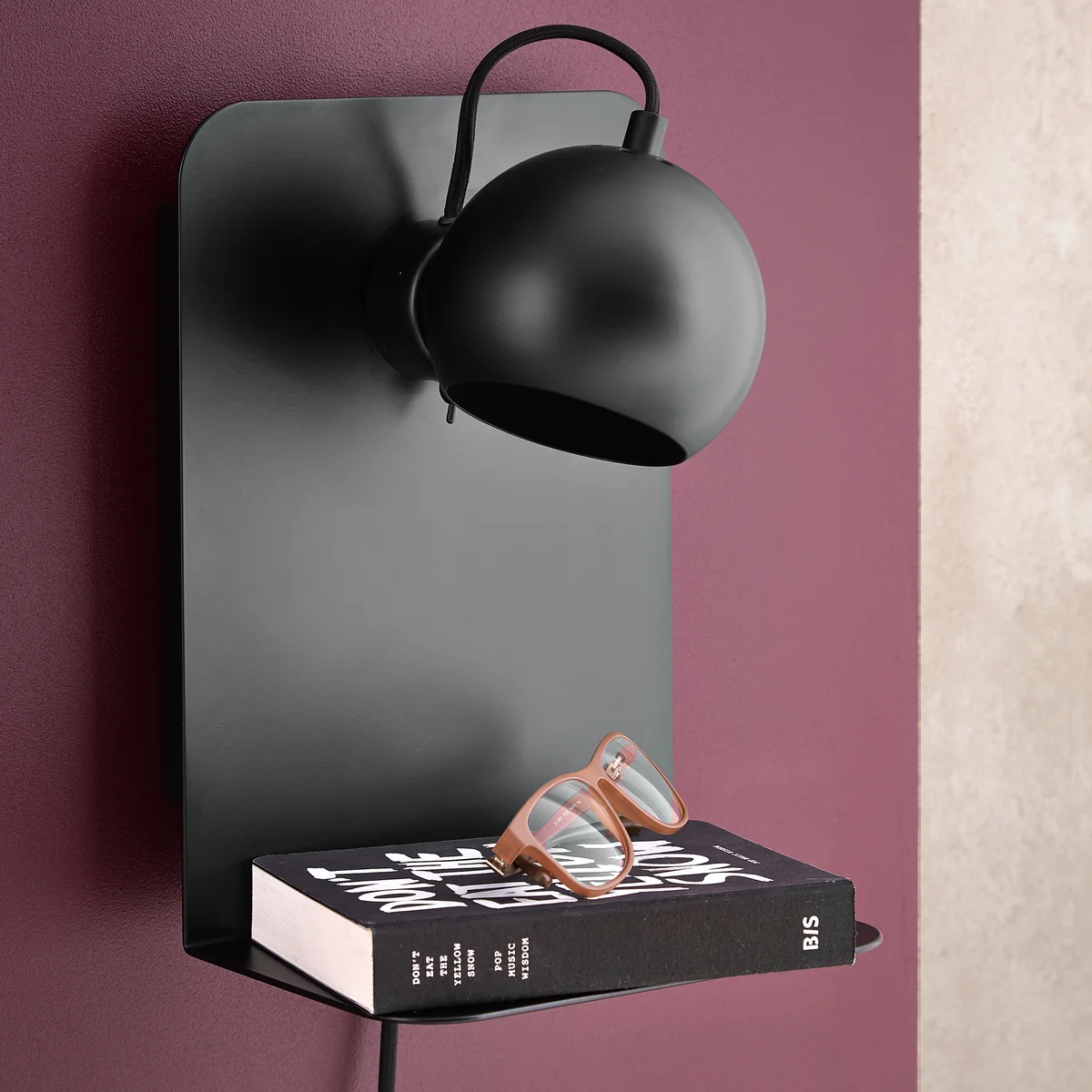 The design is ideal as a bedside table or near the sofa, where the smartphone and tablet are always close at hand. Available is the Ball Wall lamp USB with shelf of Frandsen in different colours.