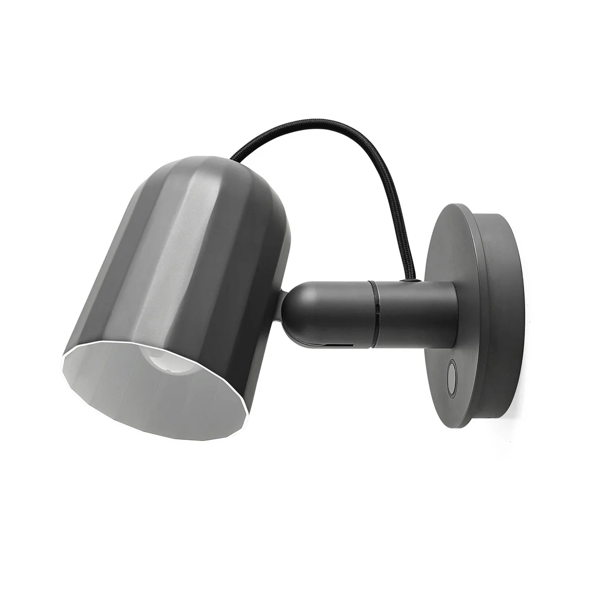 The Noc wall lamp is a product from the design team Smith Mattias for HAY. The lamp consists of aluminium casing, which is characterised by a facet-like structure and with light edges creates a play of light and shadows. The simple design has a light industrial charm that blends perfectly into any environment.