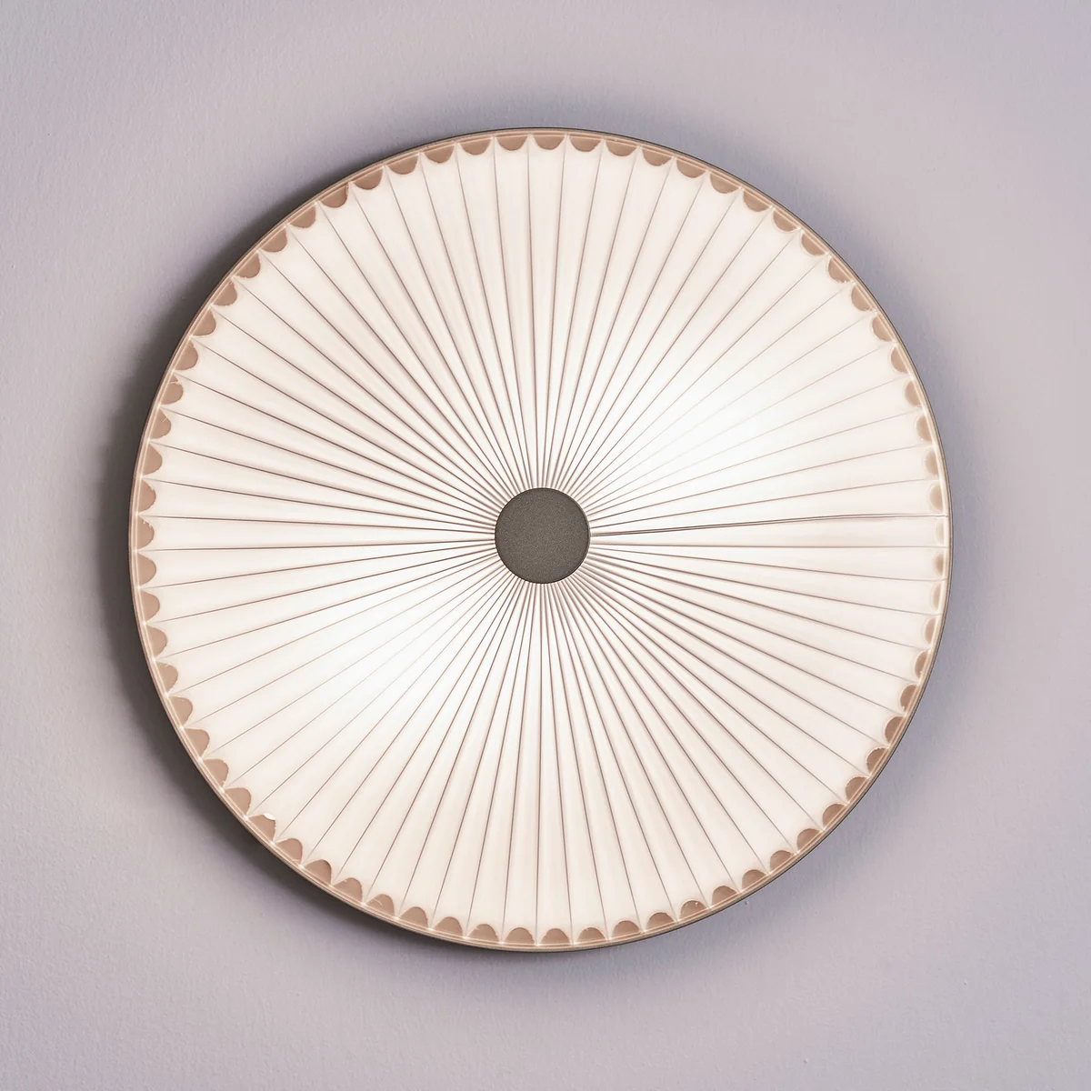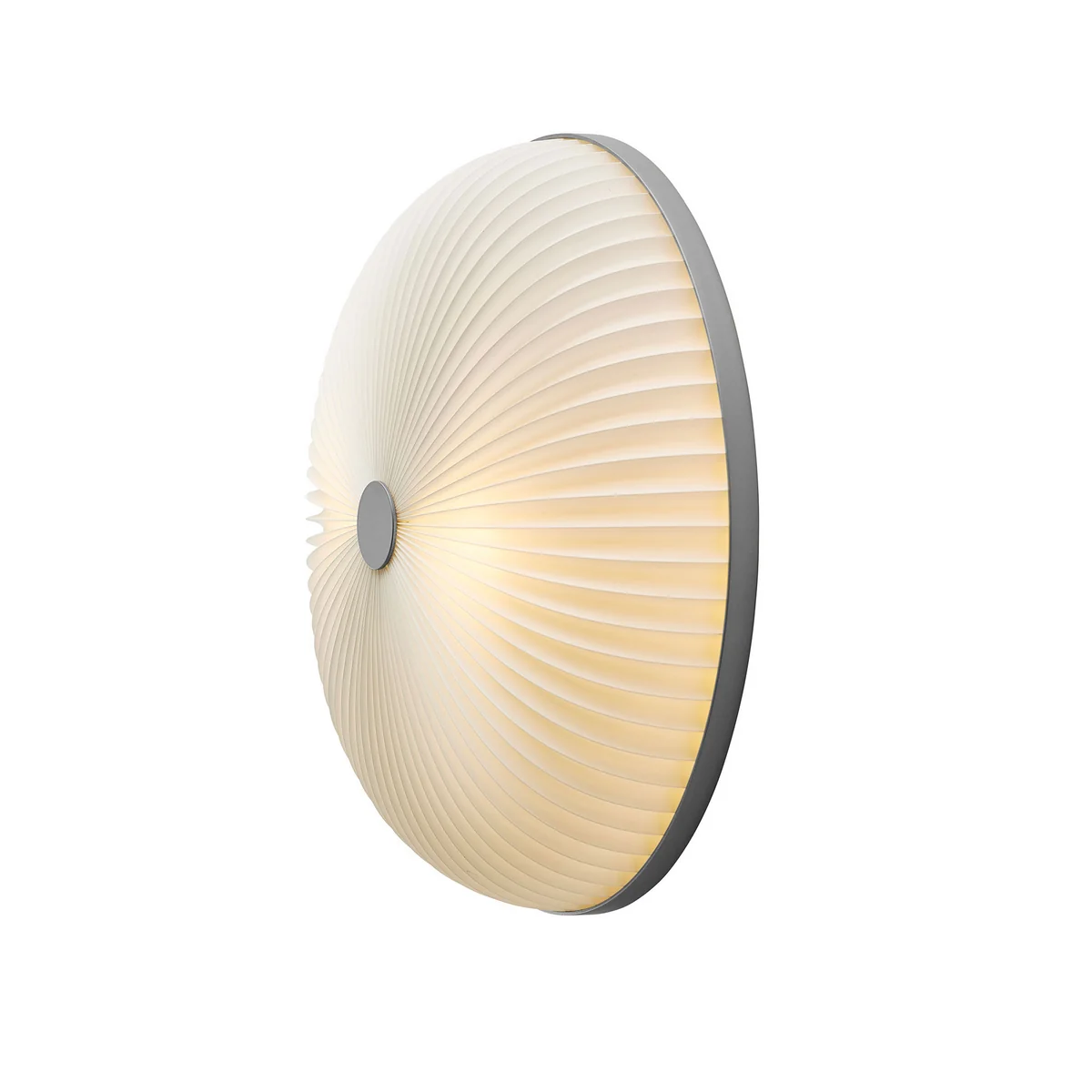 The Lamella wall and ceiling lamp from Le Klint is a version of the Lamella pendant lamp designed by the designer duo Jonah Takagi and Hallgeir Homstvedt. The two designers were fascinated by the underside of mushrooms and were inspired by them to create a series of luminaires with a similar lamellar pleated structure. Lamella can be used flexibly as a wall or ceiling luminaire and provides glare-free light in the room.