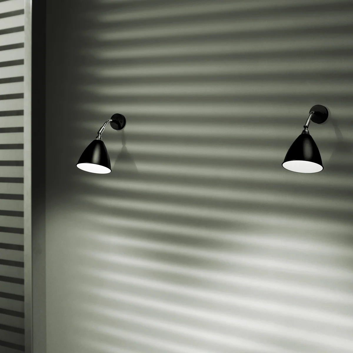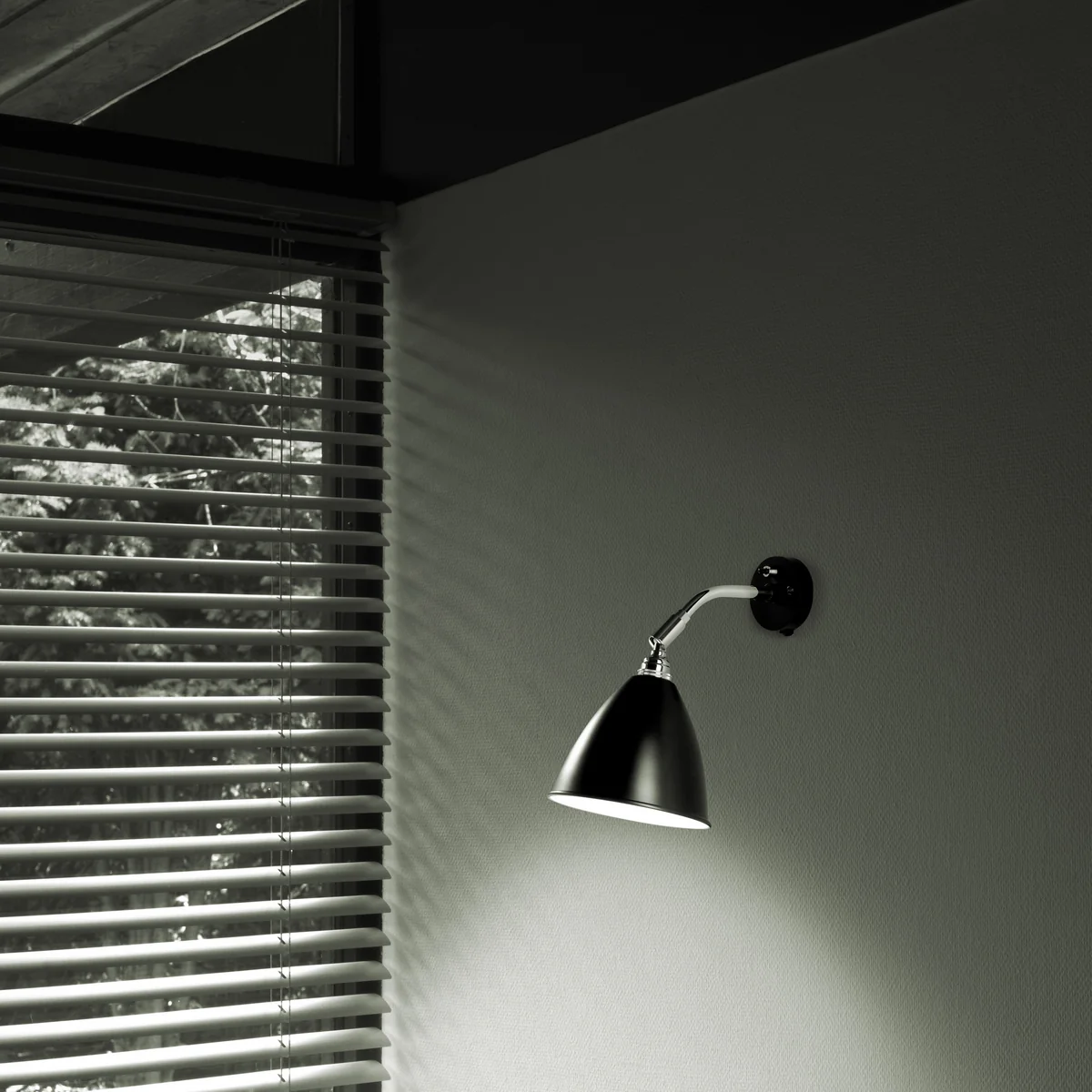 Mounted on the wall, the luminaire's characteristic shade protrudes from the wall on a short arm. The shade can also be rotated and swiveled in BL7 and is thus able to illuminate any point within its reach. The functional lamp is therefore equally suitable as a reading lamp, as a work lamp, bathroom lamp or to illuminate a special part of the room.