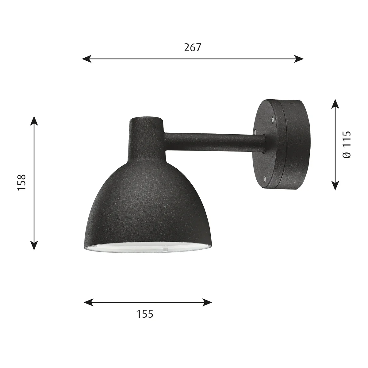 Toldbod 155 is a luminaire whose design is based on the PH elliptical reflector. In this way, the wall lamp from Louis Poulsen gives a glare-free, downward light. The white interior paint of the Toldbod wall lamp ensures good reflection and thus efficient light output.