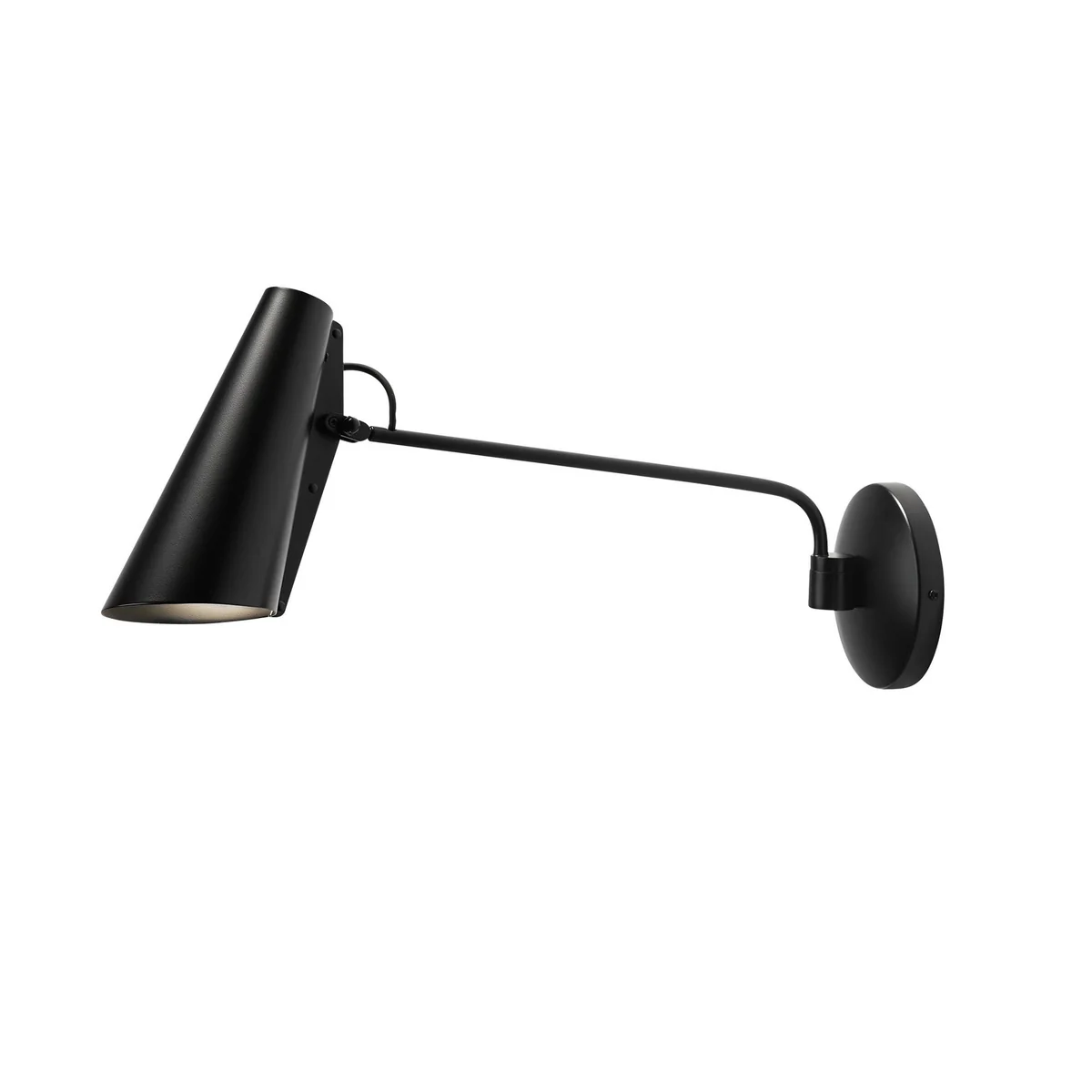 In 2013 Northern took on the re-edition of the series, whereby the lamps have lost none of the outstanding features of the originals. Like the rest of the series, the wall lamp impresses with its conically shaped light head, which can be moved to the desired position according to need and preference. The silhouette of the wall lamp is reminiscent of a bird with its head lowered, which ultimately led to the name of the series.