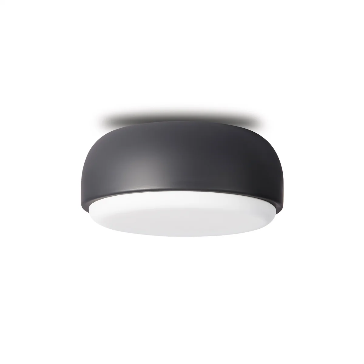 The lamp, which can be mounted on the ceiling as well as on the wall, consists of a round metal shade and a luminous glass pane, giving diffuse and pleasant light from all sides. Thanks to its minimalist appearance, it fits perfectly into modern interiors. Over Me is available in different sizes as well as colours and can be mounted flexibly, depending on the room situation, on the ceiling or wall - whether in the bathroom, in the kitchen or arranged in a row in the hallway.