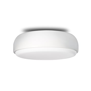 The lamp, which can be mounted on the ceiling as well as on the wall, consists of a round metal shade and a luminous glass pane, giving diffuse and pleasant light from all sides. Thanks to its minimalist appearance, it fits perfectly into modern interiors. Over Me is available in different sizes as well as colours and can be mounted flexibly, depending on the room situation, on the ceiling or wall - whether in the bathroom, in the kitchen or arranged in a row in the hallway.