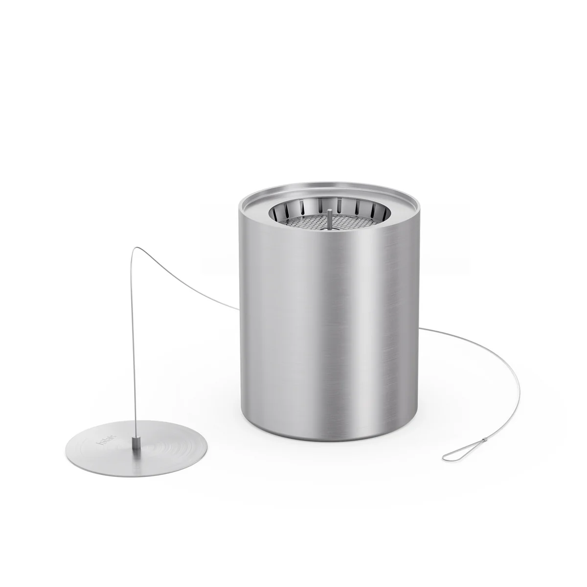 The Spin Bio-Burner with Eco-Ring and extinguishing lid from höfats. Thanks to its advanced burner technology, it produces a lively flame that is clearly visible even in daylight. The closed bio-burner can be safely filled with liquid bioethanol via the safety valve and offers a burning time of more than 1.5 hours. The flame height can be regulated with the Eco-Ring to extend the burning time by up to 50%.