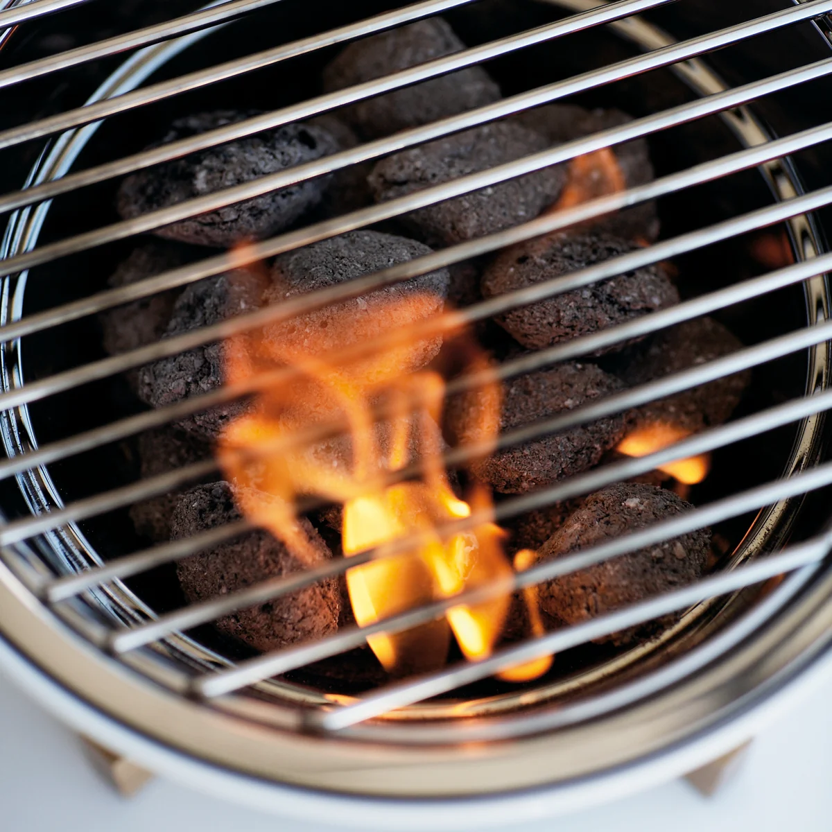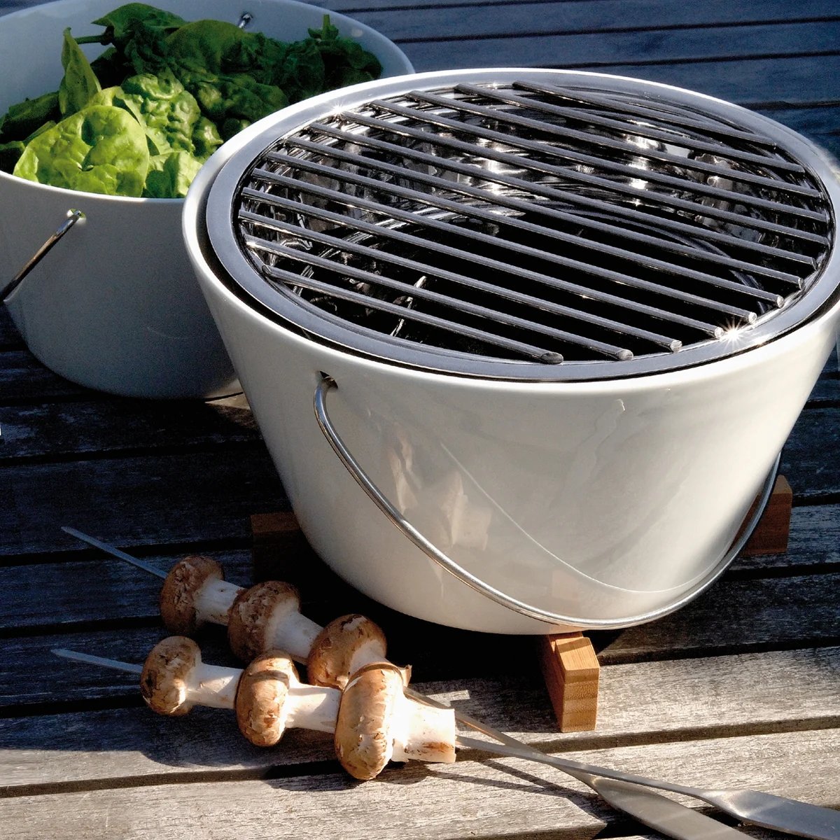 Just put the porcelain grill with warmed charcoal in the separate coal box on the table and in just an instant you can start: shellfish, chicken wings, mushrooms and much more can be barbecued easily and decoratively.