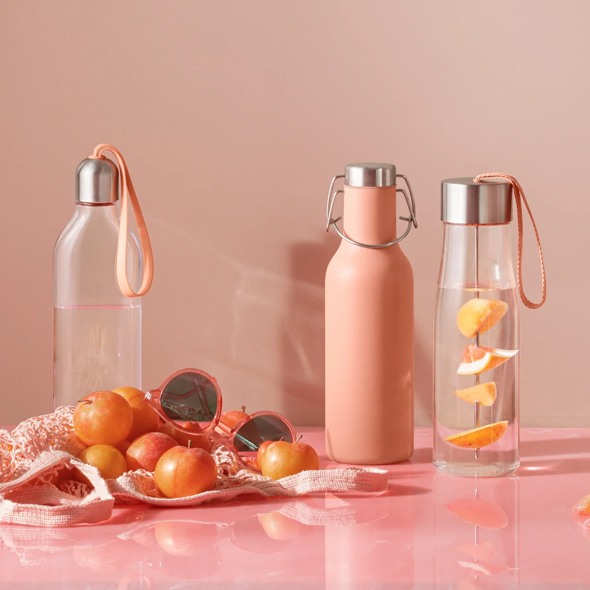 With the Backpack Drinking Bottle from Tools Design for Eva Solo , a refreshing drink from home can be enjoyed on the go. The bottle can be refilled over and over again, thus setting a sign against disposable plastic and more sustainability. The bottle is made of BPA-free plastic and is therefore free of bisphenol A, phthalates and heavy metals.