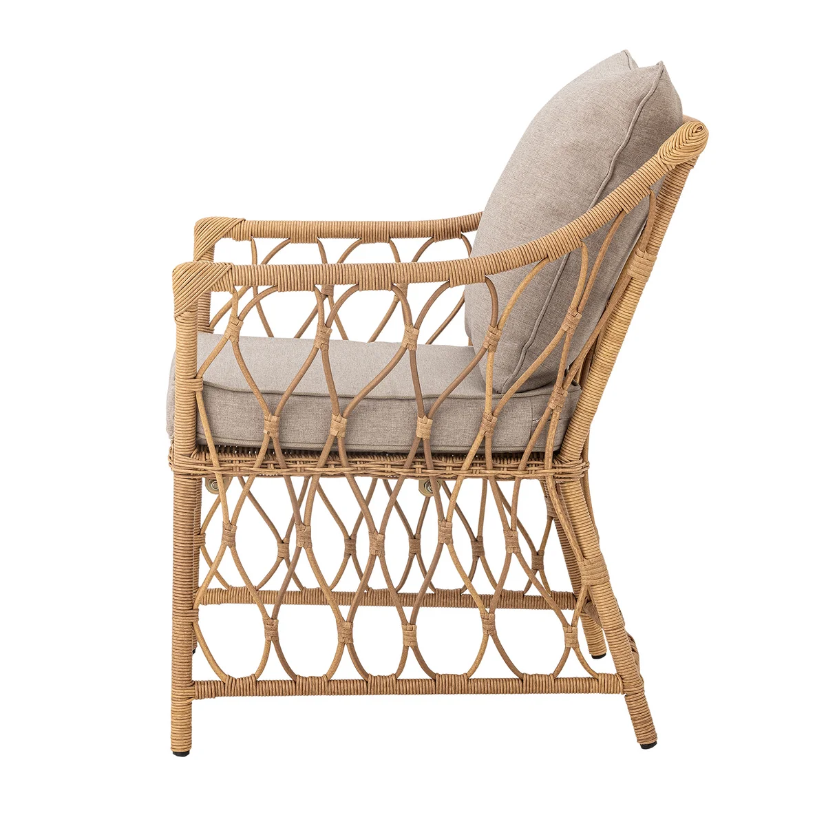 The Belluce lounge chair from Bloomingville offers relaxing hours in the garden or on the patio. The woven poly-rattan gives the chair a natural look, while the linen-textured cushions provide additional comfort. Particularly practical: the matching stool can be stored under the chair to save space.