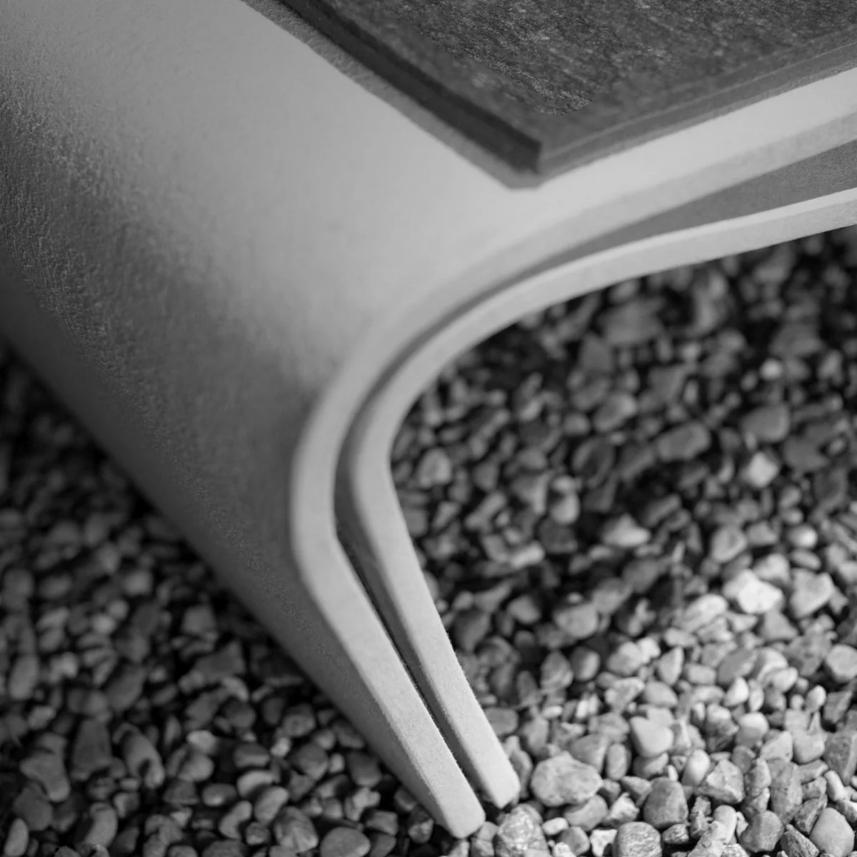 The Sponeck Outdoor armchair from Eternit combines solid materials with curved lines. It consists of two thin, curved Eternit -panels, which create a static system by their compound. Eternit is absolutely hard-wearing and made entirely of fibre cement. It consists of the natural materials cement, limestone powder, fibres, air and water, is 100% recyclable and of course asbestos-free.