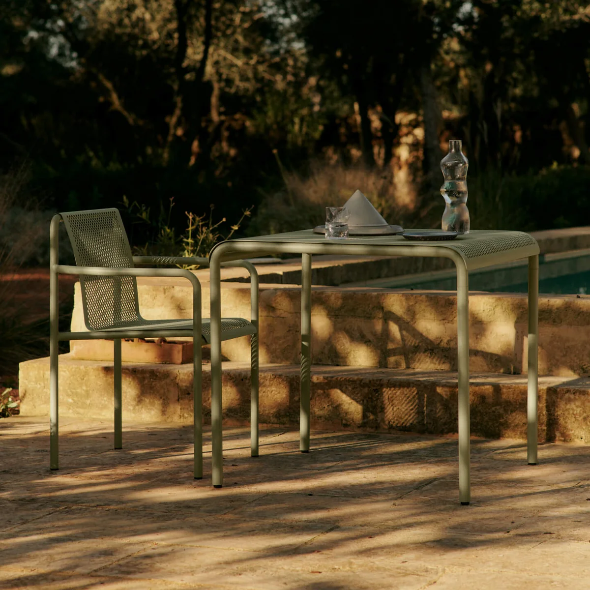 The Dapple garden armchair from Ferm Living is inspired by the beauty of sunlight shining through the leaves, creating a calming atmosphere outdoors. Crafted from powder-coated galvanized steel, this chair offers both durability and protection from the elements while maintaining an elegant aesthetic. Equipped with comfortable armrests, it offers additional comfort and complements your outdoor area in a simple but effective way.