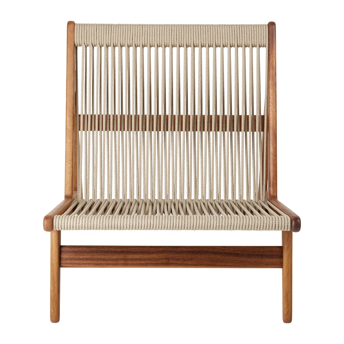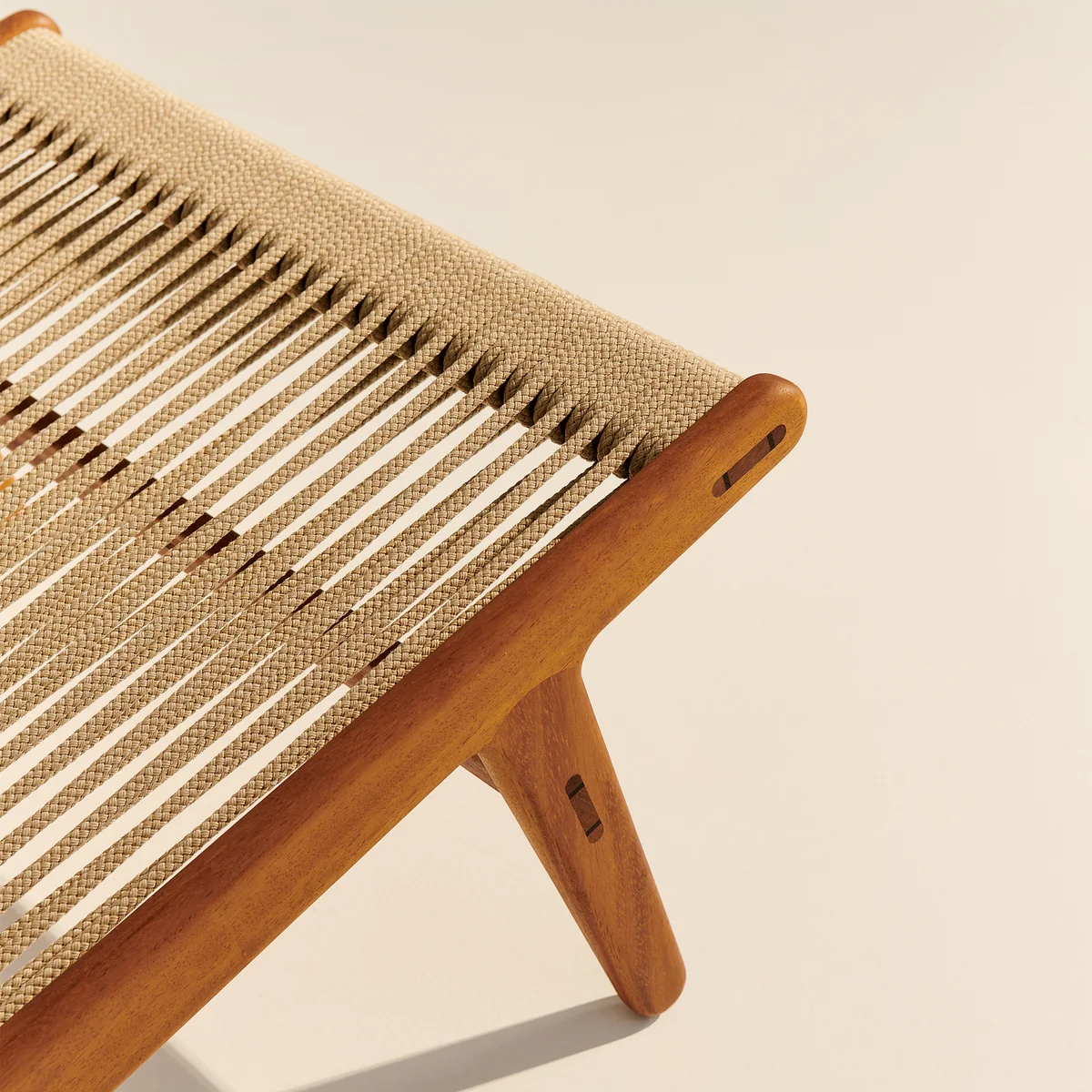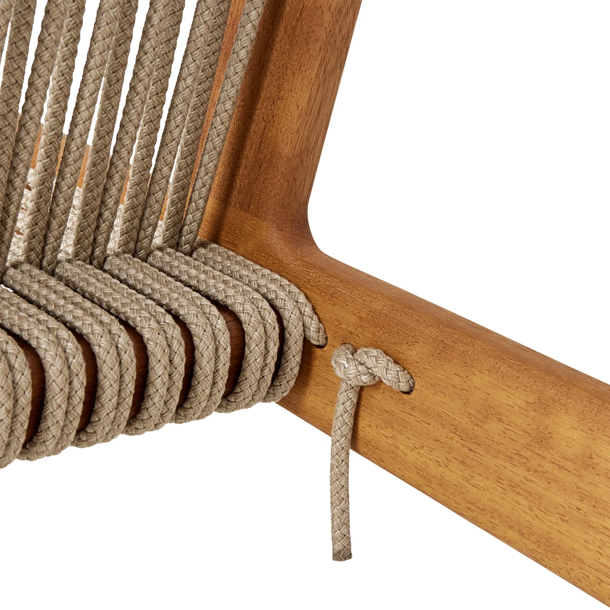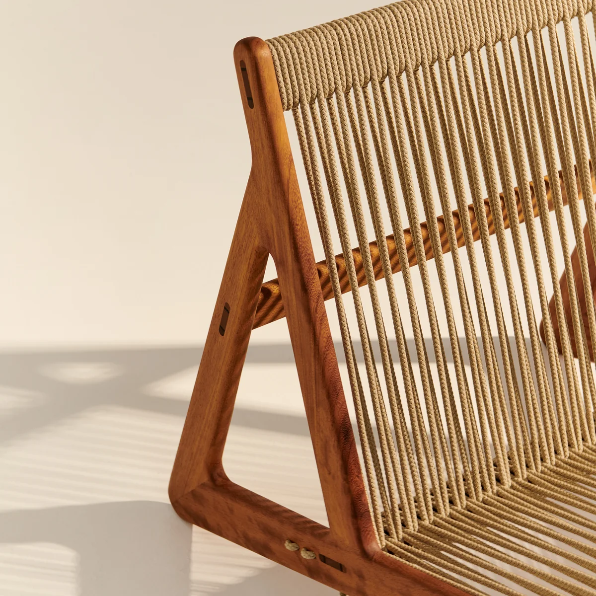 Made of wood and rope, the lounge chair creates a floating feeling that still pleads to a groundedness. With a comfortable backrest, the lounge chair can be used in different areas of the living space, creating a place of relaxation and tranquility.