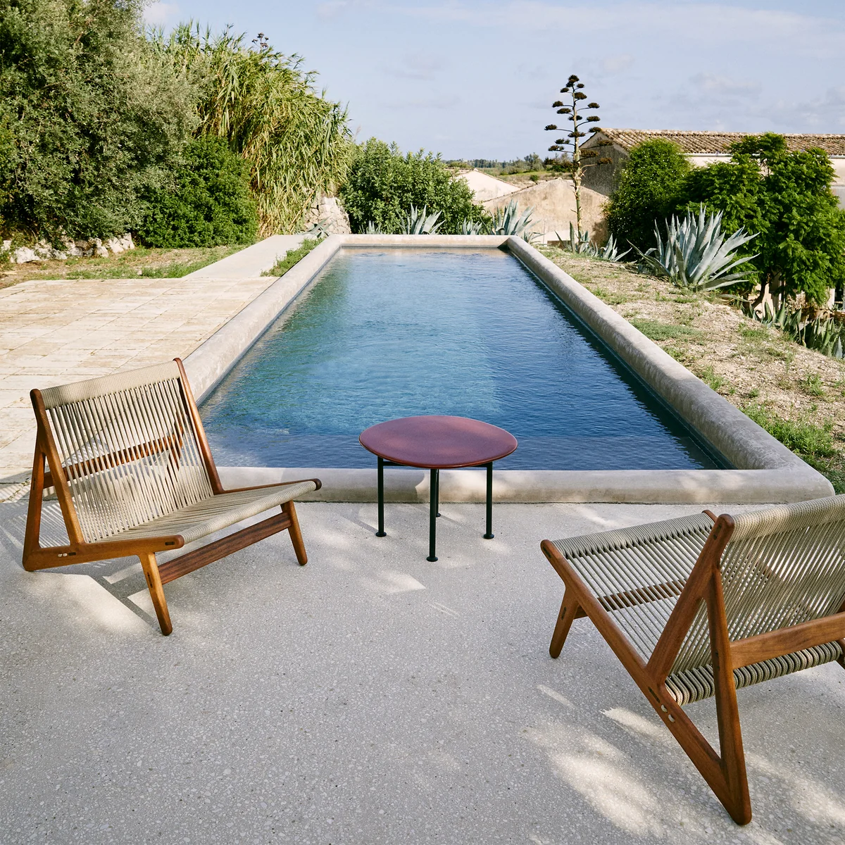 The MR01 outdoor lounge chair from Gubi springs from the studio of Danish talent Mathias Steen Rasmussen. In this unique It piece, he combines traditional craftsmanship with huge comfort and sustainable production.
