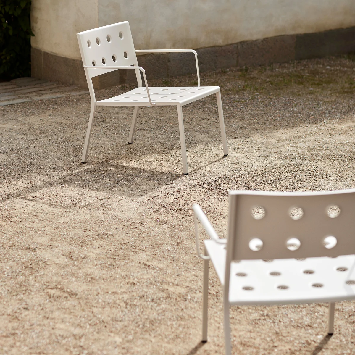 The Balcony Lounge armchair by Ronan and Erwan Bouroullec for HAY is an elegant and functional chair with armrests. The wide, square design is given a softer look by the rounded back and armrest. The holes in the seat and backrest give stability to the design and also provide a special expression. The Balcony Lounge Armchair is made of powder-coated steel with a coating that guarantees resistance and durability, making it ideal for outdoor use.