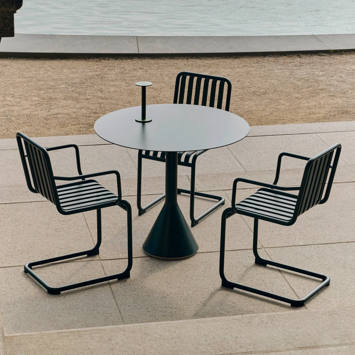 The HAY Palissade Cantilever armchair is an ultra-modern outdoor armchair from the Palissade Cantilever collection by HAY , which combines iconic design aesthetics with functional lightness. This seating solution reinterprets the characteristic design language of the Palissade family and creates a particularly airy appearance that is equally impressive in patios, gardens, balconies or urban environments.
