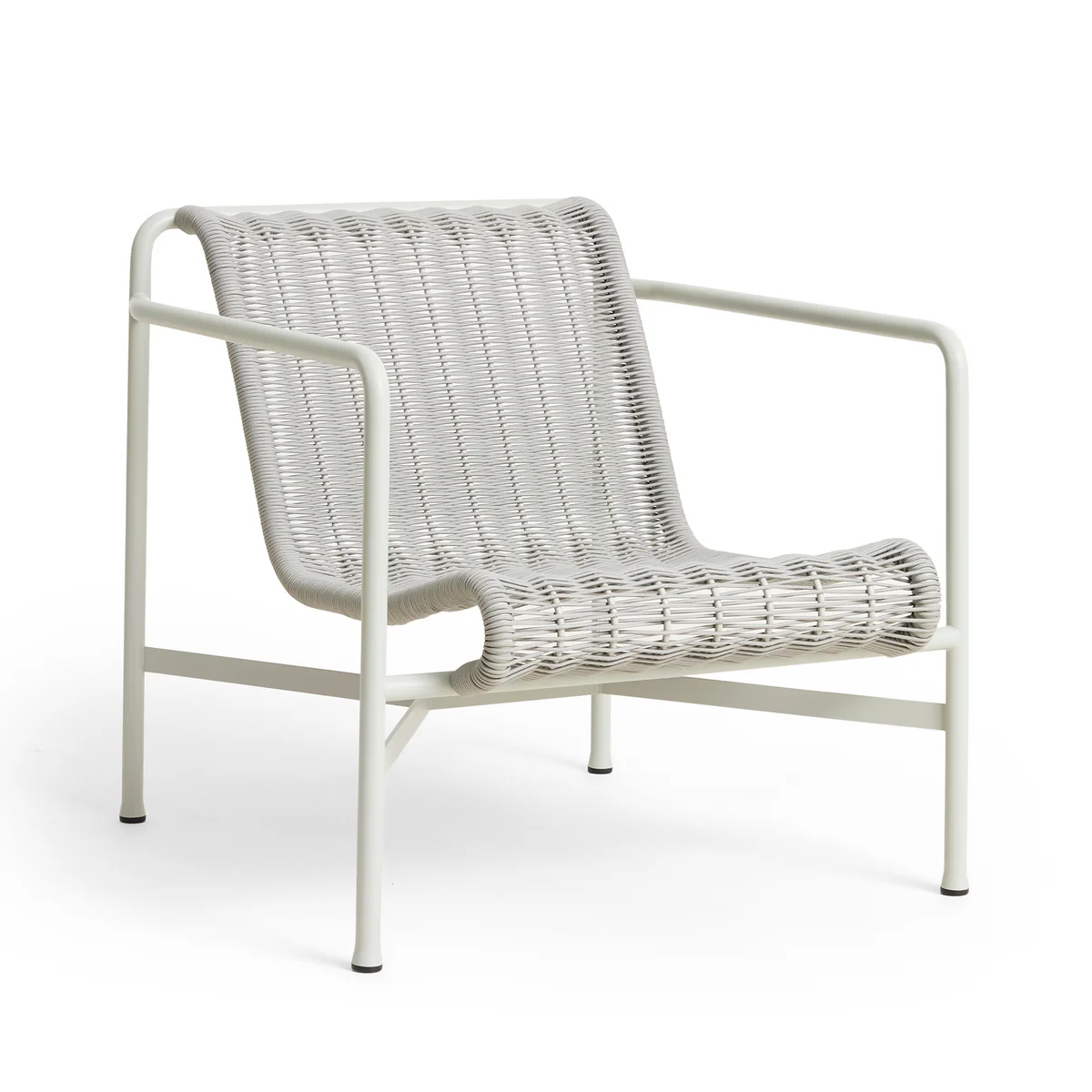 The Palissade Cord Lounge Chair Low from HAY combines the characteristic, symmetrical geometry of the Palissade collection with a soft, inviting expression. The powder-coated steel frame ensures stability and durability, while the hand-woven recycled polyester cord seat in matching tones provides a comfortable and hard-wearing seat. With its timeless aesthetic and versatile color palette, the armchair blends effortlessly into both natural and urban outdoor spaces - from cafés and restaurants to gardens, terraces and balconies. The result is an outdoor piece of furniture that combines modern design with high seating comfort and adds a stylish touch to a wide variety of outdoor spaces.