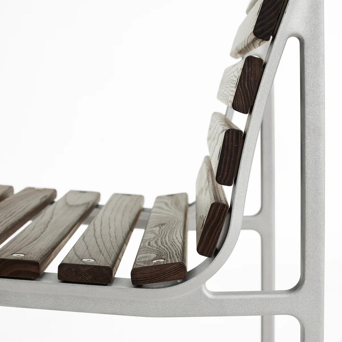 The Traverse outdoor chair from HAY , designed by Erwan Bouroullec, impresses with its timeless design and robust construction. Its die-cast aluminum frame and the slatted seat made of heat-treated ash wood give the chair stability and a natural, appealing look. Over time, the wood develops a subtle patina, which further emphasizes the character of the furniture. Thanks to its balanced proportions and comfortable seat, the chair is suitable for use in both private gardens and public outdoor areas. It can be easily combined with other pieces from the Traverse -collection, creating an inviting atmosphere for spending time together outdoors.
