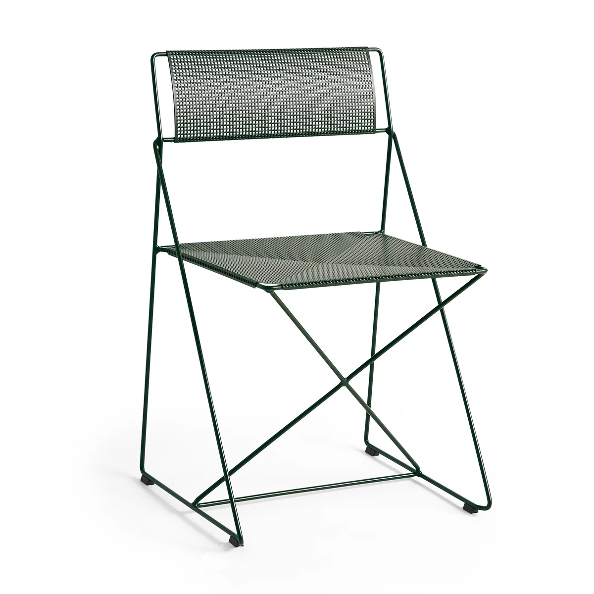 The X-Line outdoor chair from HAY , designed by Niels Jørgen Haugesen in the late 1970s, is a timeless classic with a modern design. Made of thin metal wire, the chair combines industrial charm with precise steel construction and is an outstanding example of the high-tech movement of the 1970s.