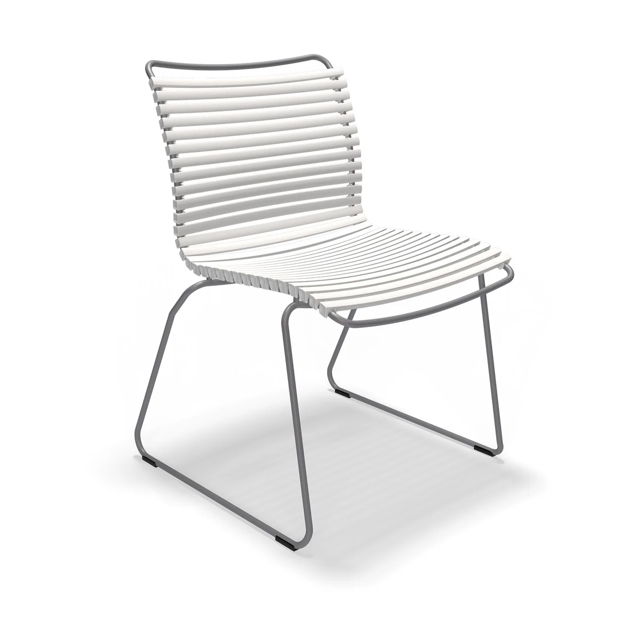 The CLICK Outdoor Dining chair from HOUE impresses with its simple, honest and ergonomically well thought-out design. Without armrests or optionally with armrests, it presents itself as a harmonious element that is repeated around the table, creating a harmonious overall look. The innovative plastic slats are precisely designed - thanks to the optimum balance of firmness and flexibility, they offer outstanding seating comfort even without upholstery. Particularly practical: the slats can be easily exchanged with a click, allowing you to customize the appearance of the chair or mix different colour combinations. The CLICK Dining Chair is available in 11 attractive colors and also impresses with its stackable design, which makes it ideal for everyday use.