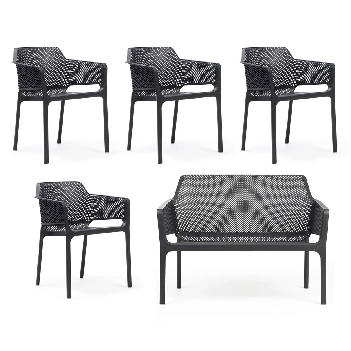 The design of the Net Garden bench comes from Raffaello Galiotto and is characterized by a modern form language, which fits perfectly into any outdoor ambience. Available in different colors, the bench can be adapted to your own taste and combined perfectly with other garden furniture from Nardi .