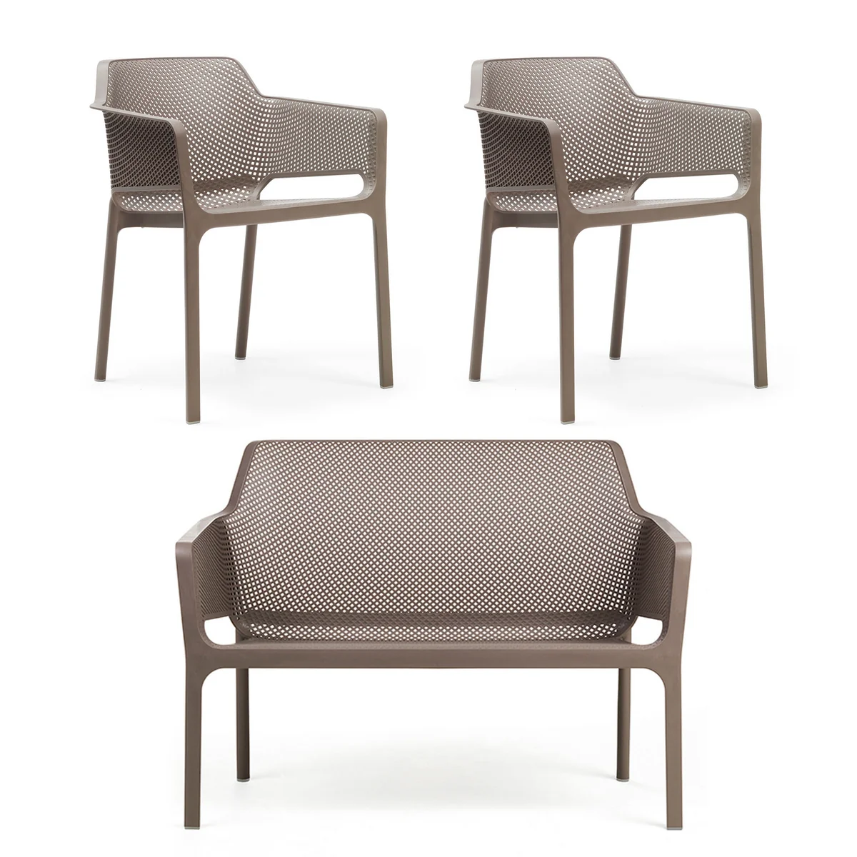 On the Net Bench from Nardi can spend relaxing hours in the sun in the garden. With a length of 116 cm, the bench offers relaxed space for two people and provides maximum comfort thanks to the armrests. Made of solid-colored, recyclable fiberglass polypropylene, the bench is durable and ideal for outdoor use. The material is UV-resistant and has a diamond-shaped perforation, which allows rainwater to drain away easily. At the same time, ventilation of the back takes place, which is especially advantageous on hot days.