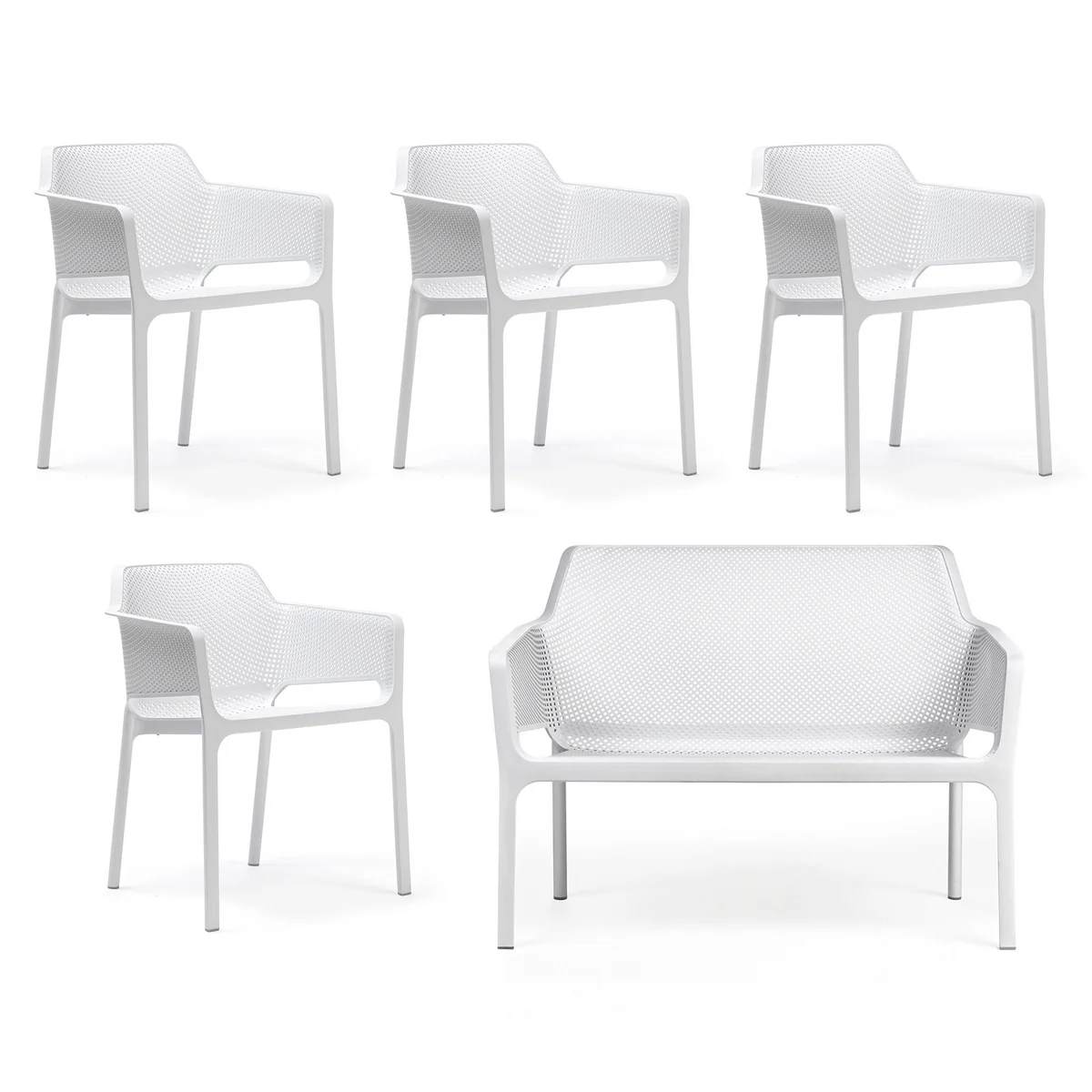 On the Net Bench from Nardi can spend relaxing hours in the sun in the garden. With a length of 116 cm, the bench offers relaxed space for two people and provides maximum comfort thanks to the armrests. Made of solid-colored, recyclable fiberglass polypropylene, the bench is durable and ideal for outdoor use. The material is UV-resistant and has a diamond-shaped perforation, which allows rainwater to drain away easily. At the same time, ventilation of the back takes place, which is especially advantageous on hot days.