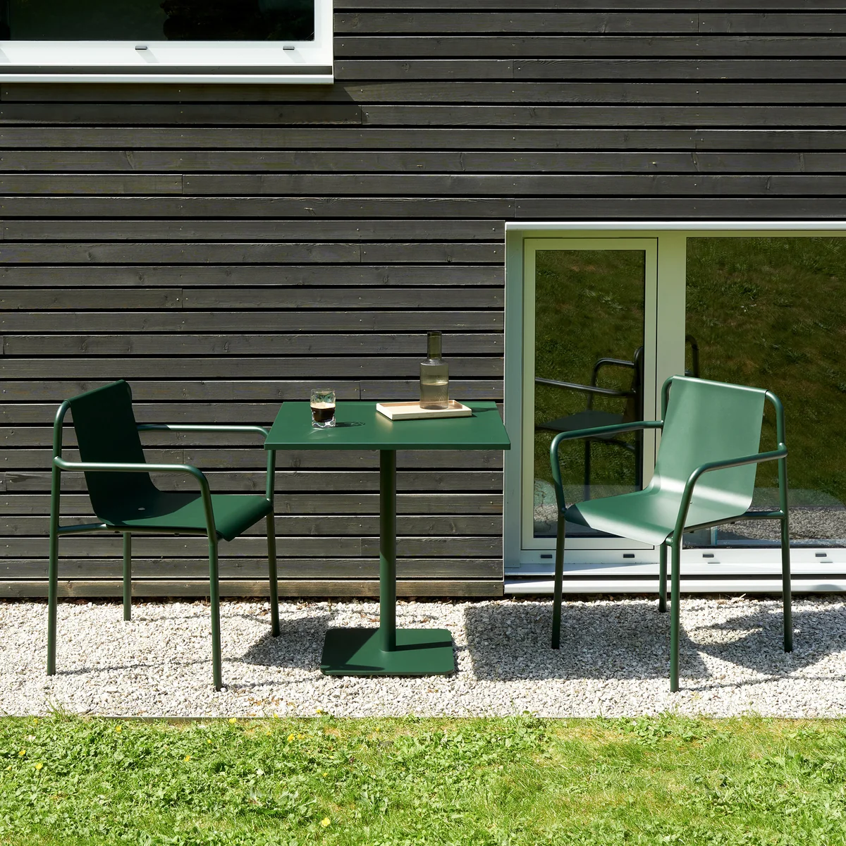 Made from bent, powder-coated sheet steel, the chair impresses with its stability and resistance to the elements. A high-quality anti-corrosion treatment provides additional protection for the material and ensures a long service life outdoors.