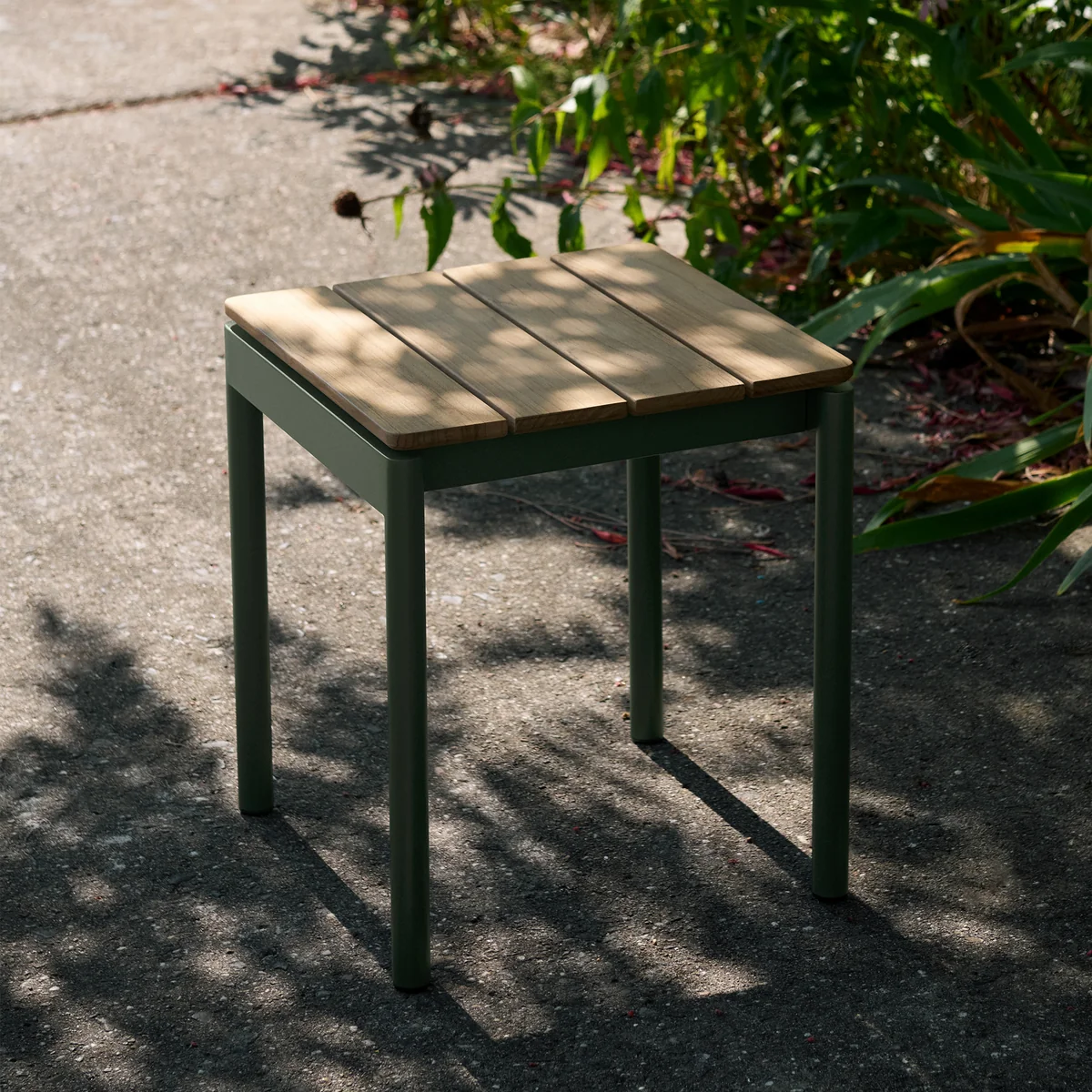 The Ville AV47 garden stool from Anderssen & Voll für & Tradition combines minimalist design with functional flexibility. Its slender steel frame creates an elegant look, while the optional teak seat adds warm, natural accents. Thanks to its versatility, the stool can be used as additional seating, a footstool or a compact side table.