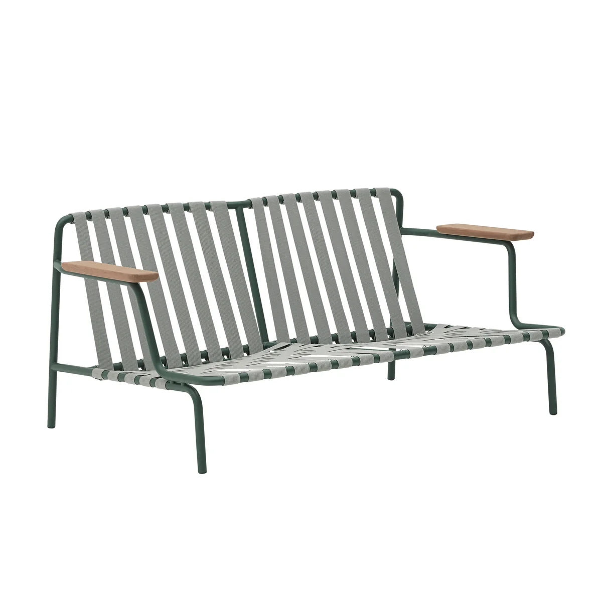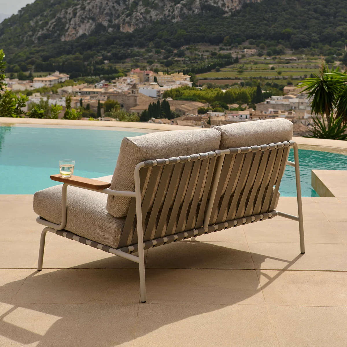 The Settle Outdoor 2-seater sofa combines modern Scandinavian design with long-lasting comfort for outdoor use. The airy steel construction with visible strap details gives the sofa a light, elegant look while ensuring stability and durability.