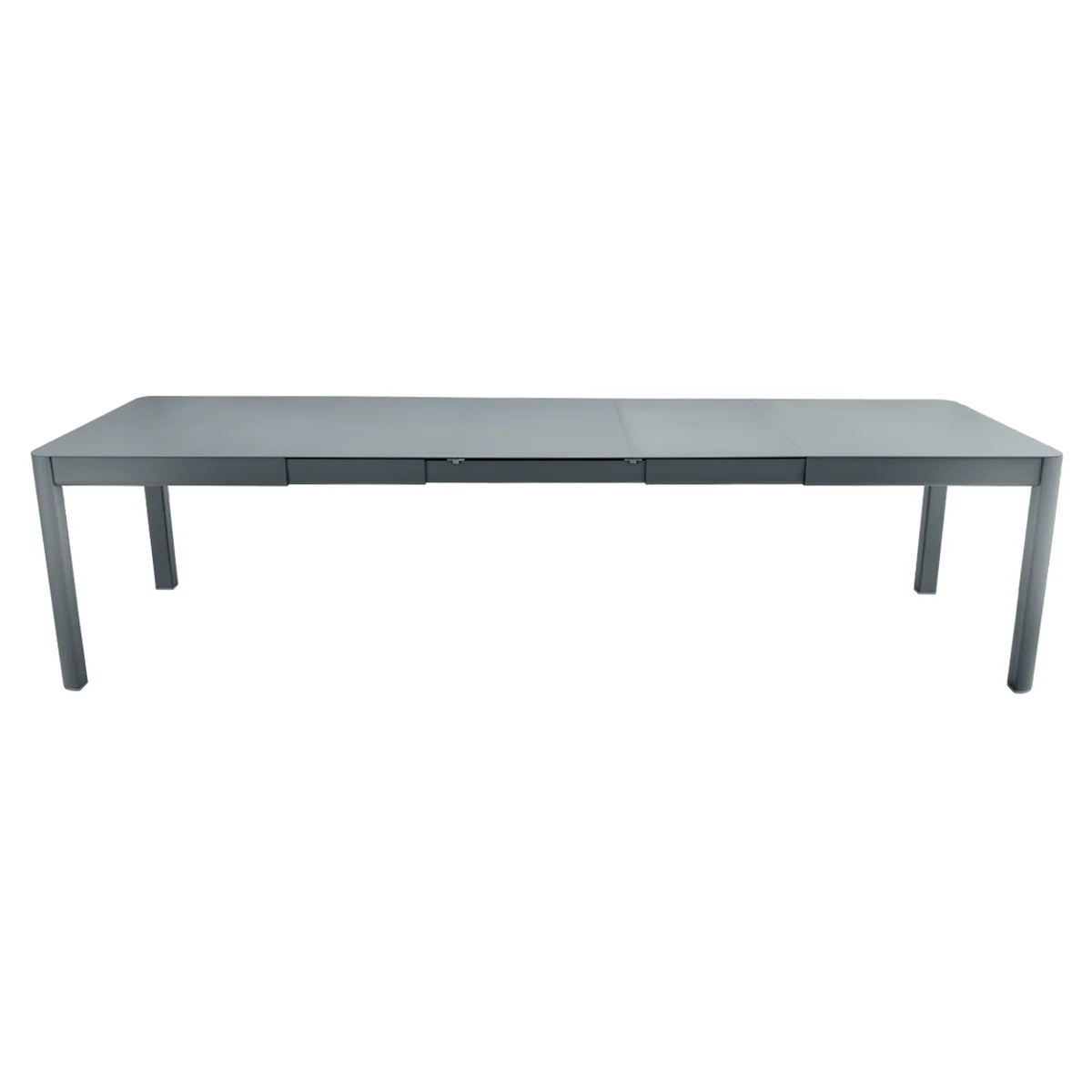The Ribambelle garden table from Fermob seats 6 to 8 people - with or without an additional leaf. Thanks to a telescopic system with rails, the extension leaf can be used to offer guests two additional seats in no time at all. The storage compartment under the tabletop is also extremely useful. By the way: when pushed together, it is not obvious that Ribambelle is an extendable table.