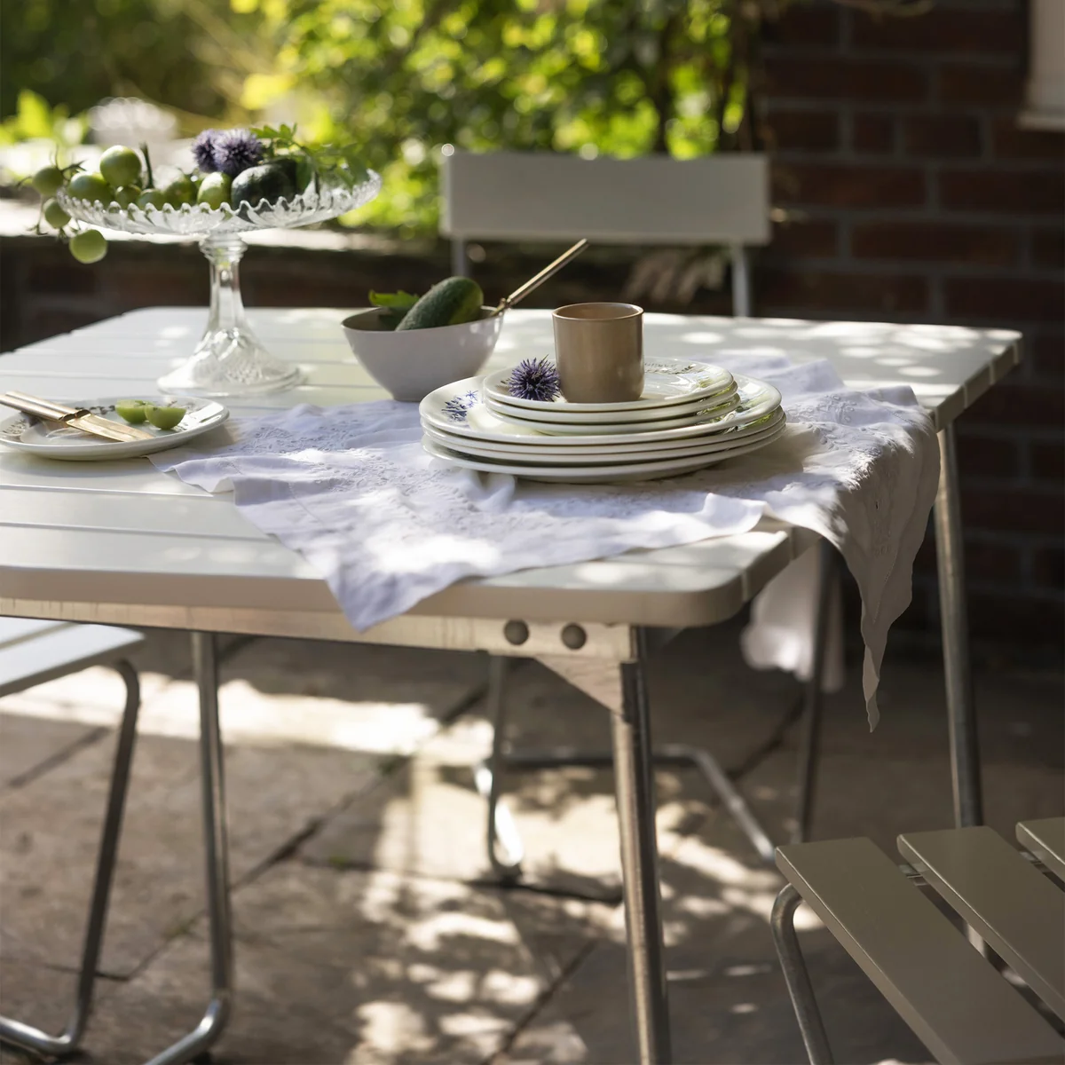The B31 84 garden table from Grythyttan. This smaller table from the classic series offers space for 2 people. The design is based on an original design by Artur Lindqvist from the 1950s. The base is removable, which makes it particularly practical.
