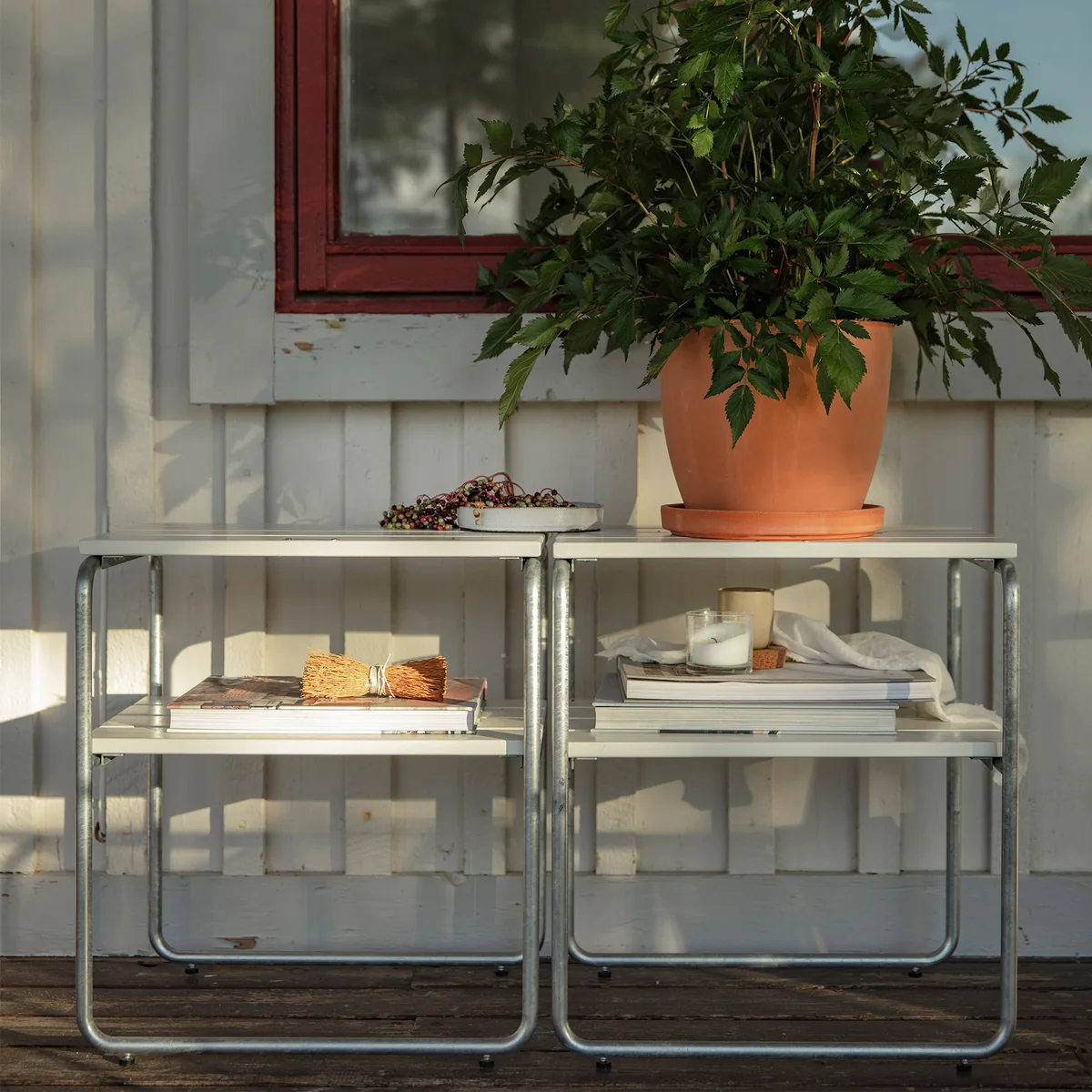 The L45 garden side table, designed by Maria Håård and Jan-Olof Ågren for the Swedish manufacturer Grythyttan, fits perfectly into the classic series. Thanks to its two levels, it is particularly practical and can be used in a variety of ways. Depending on preference, the garden side table is available in a variety of versions.