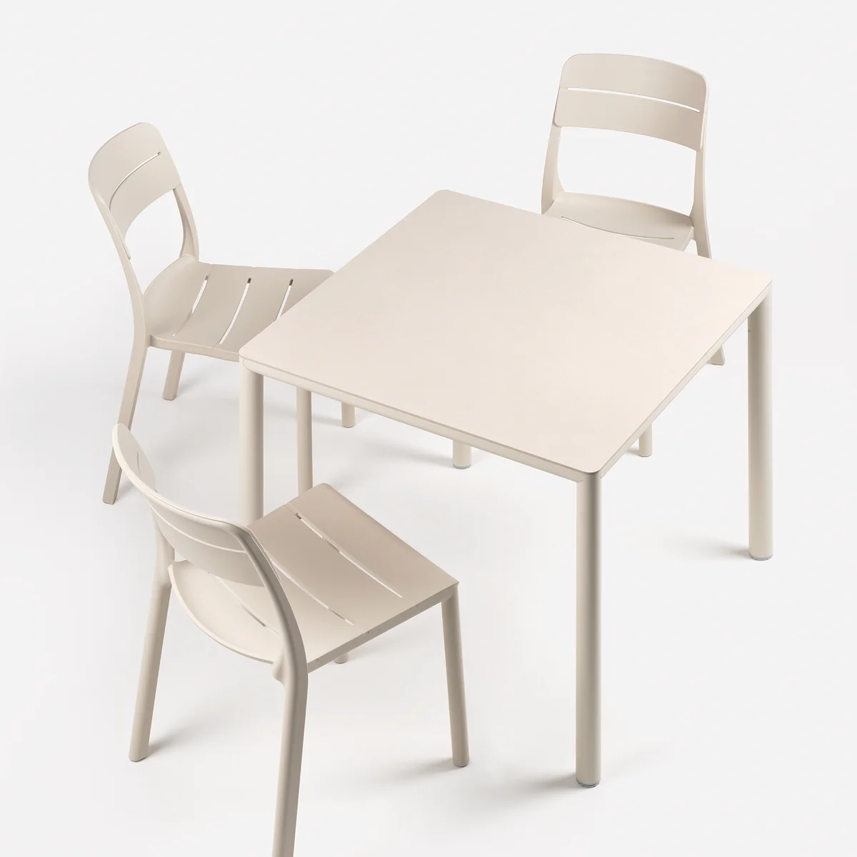 The minimalist, clear design language allows the Piave table to blend harmoniously into different outdoor areas. Whether in combination with matching Nardi chairs or as a stand-alone piece next to lounge furniture, it creates a stylish and functional accent.