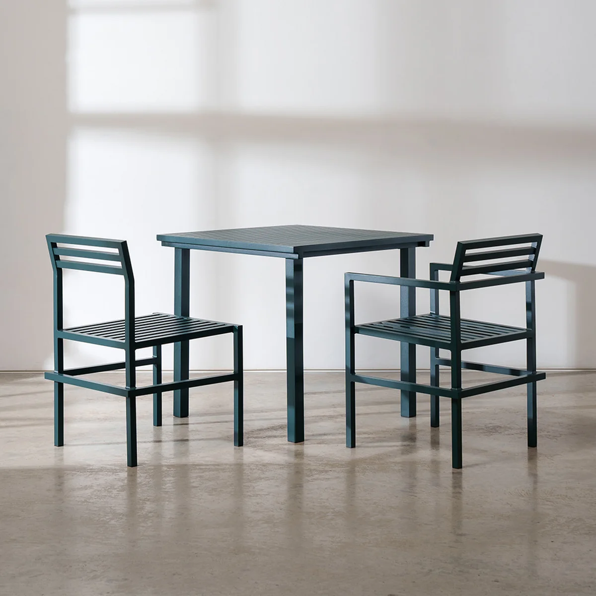 The Dining Table square by Butterfield Brothers for the manufacturer NINE inspires with its unique, modern design. The '19 Outdoor' collection is inspired by the designers' charity project '19 Chairs'. The table is suitable for outdoor use and is made of aluminum. The material can be recycled with little energy input and reused as a recyclable item - accordingly, the fully inclusive production process is sustainable. The Dining Square table is available in different colors.