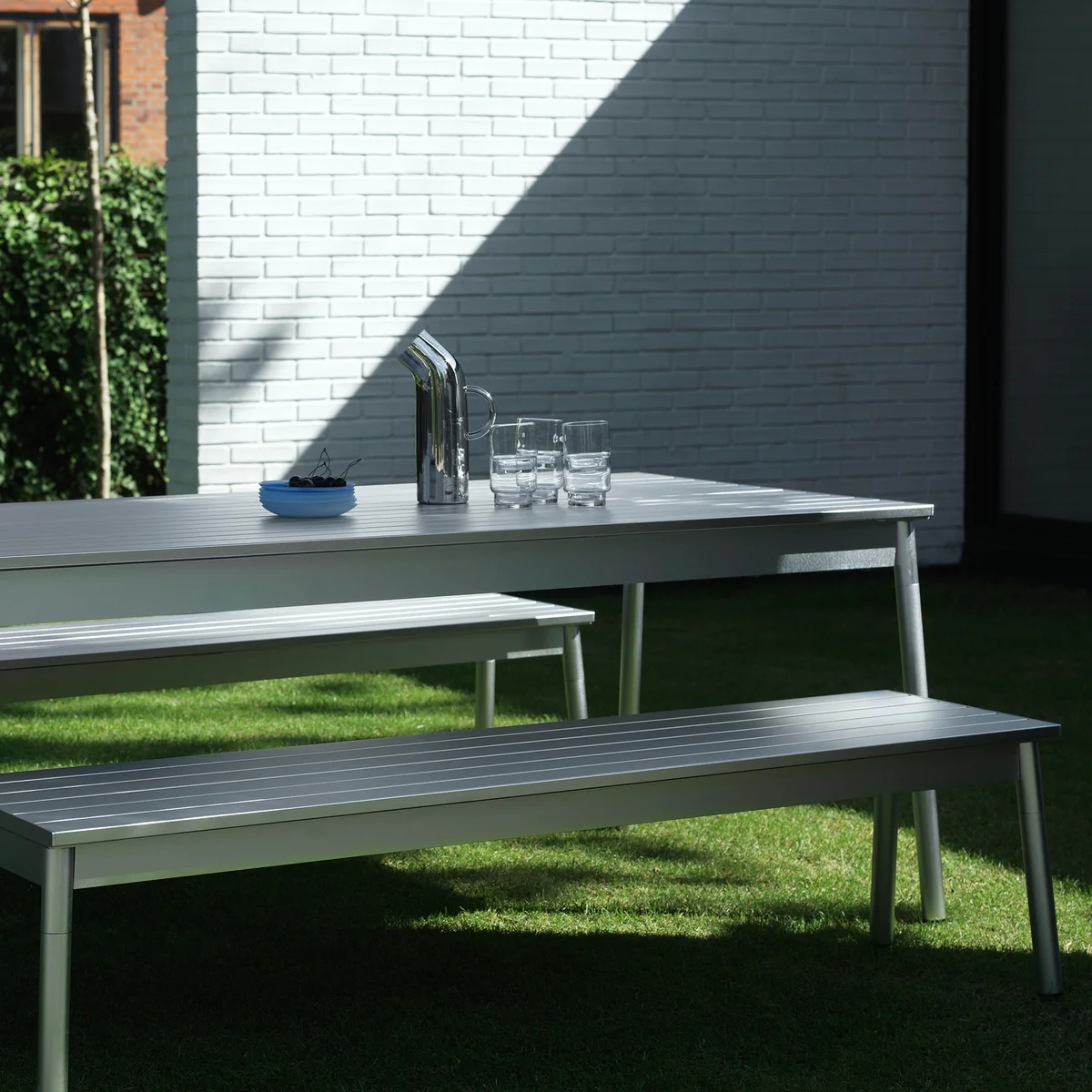 The Ex garden dining table from Normann Copenhagen combines timeless aesthetics and exceptional durability in an elegant outdoor design, designed by Simon Legald. Made from lightweight and corrosion-resistant aluminum, the table impresses with its clean lines and subtle details.