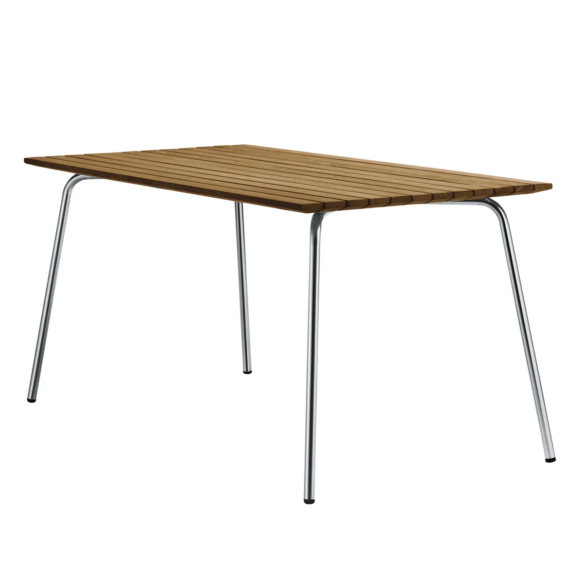 The S 1040 garden table from the All Seasons collection by Thonet is characterised by its robust yet elegant appearance. Its table top is made of African Iroko wood (FSC® seal), which is characterized by its high density and absolute weather resistance. The wood is therefore ideally suited for outdoor use and can be wonderfully combined with other garden furniture from the All Seasons collection.