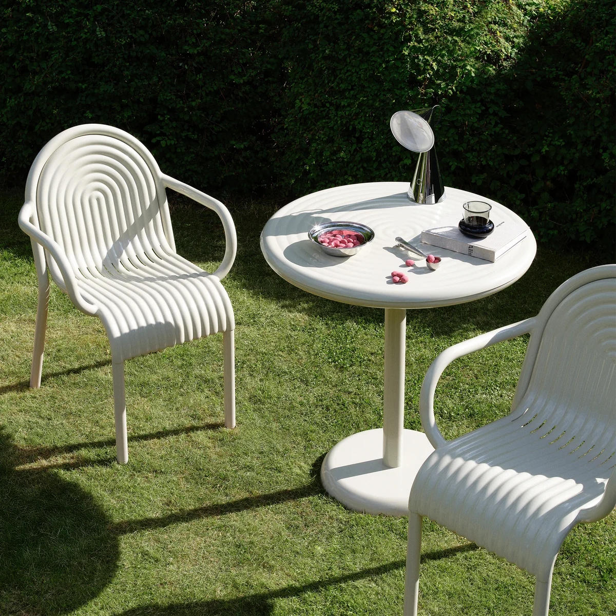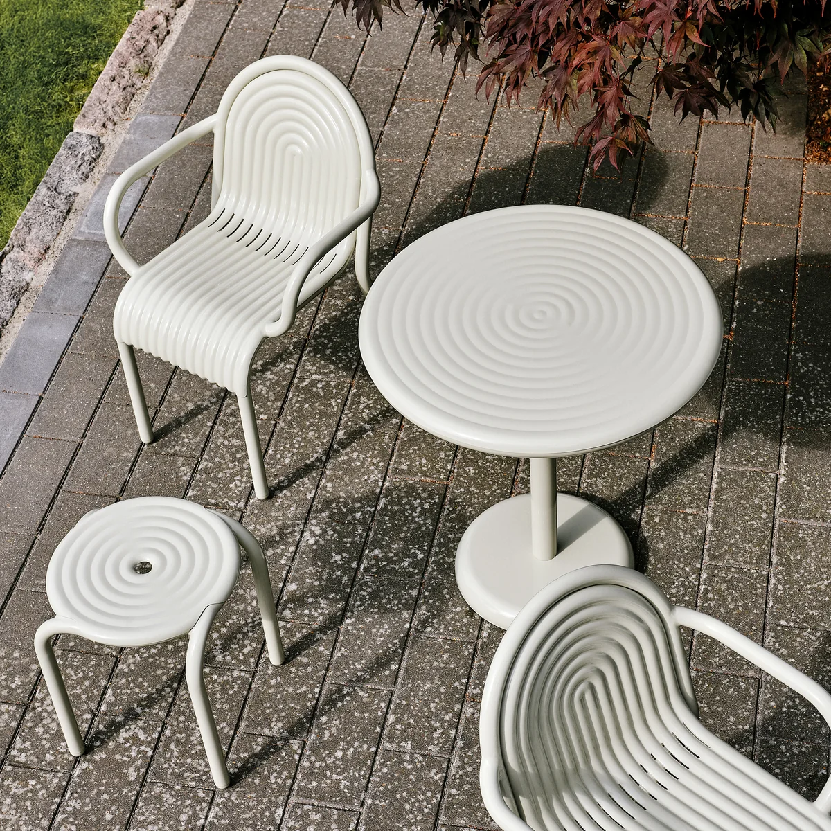 The Groove Round Garden garden table is a masterpiece of outdoor furniture design that combines art and functionality. After more than 10 years of development, this table offers an elegant solution for any outdoor environment. Made from robust aluminum, it guarantees durability and corrosion resistance, while the striking, art-deco inspired grooves give the design a unique charm. In timeless color tones, the table can be effortlessly integrated into any garden setting.