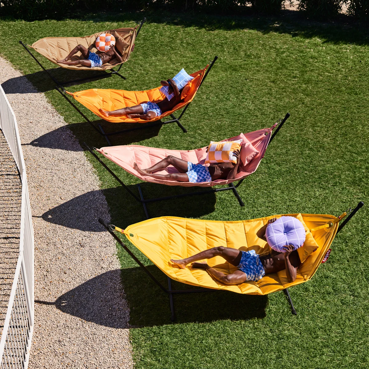 For one, two or three: the Fatboy Headdemock is an oversize hammock that offers the ideal place to lounge - for a chat with friends, for a quiet time with the whole family, for the children to play or all alone with all four of you stretched out. The hammock lives up to its promise and offers space for one, two or even three adults in the typically extravagant oversized Fatboy design. With a load capacity of 150 kg, the frame does a great job.