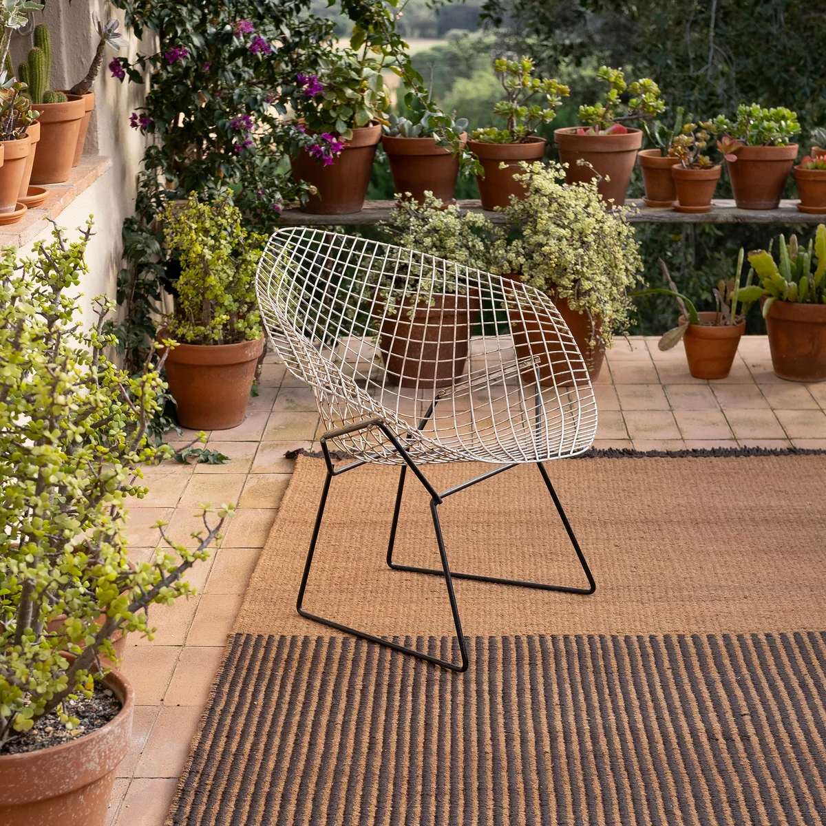 The Garden rug is specially designed for outdoor use and combines functionality, style and environmental awareness in a unique way. Made from recycled PET and robust coir fiber, this hand-woven Dhurrie rug brings warmth and character to gardens, patios or balconies - without compromising on durability or aesthetics. Thanks to its weather-resistant properties and firm structure, Garden is ideal for everyday outdoor use. The design blends harmoniously into natural surroundings and creates a homely ambience in the open air.