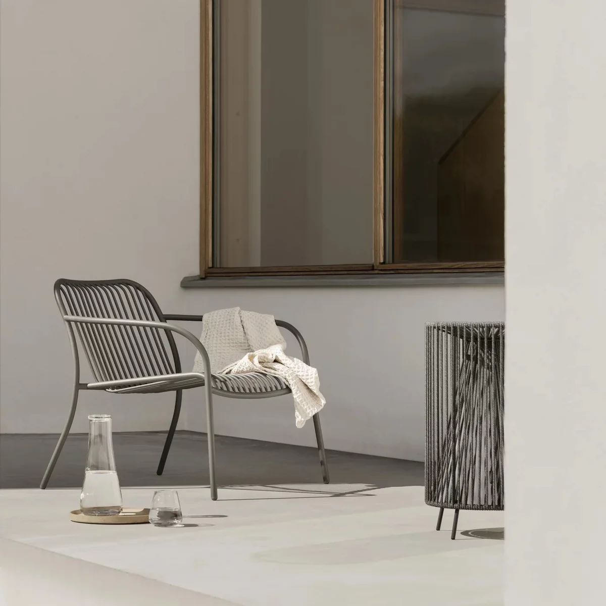 The Yua Wire Outdoor lounge chair from Blomus embodies the refined design language of renowned studio kaschkasch, which has focused on creating more formal garden furniture that nevertheless has its own identity. With a focus on the subtle integration of flowing lines around the main struts, the Yua family creates a coherent aesthetic that is reflected in every element of the range. The range offers a variety of possible combinations, including classic chairs with or without armrests, as well as wider and more relaxed loungers available in both flat steel and filigree metal struts. The range is complemented by a lounge sofa in the Yua Wire version. From large dining tables to small bistro tables and low lounge tables in various shapes, the Yua range can be perfectly adapted to individual needs and style. The furniture is available in Silk Gray and Granite Gray and can be stacked or combined in a variety of ways. Made from durable steel that is galvanized and finished with a high-quality weather-resistant powder coating, the furniture offers excellent durability in outdoor use. To ensure its longevity, it is recommended to cover the furniture in winter so that you can enjoy it for a long time.