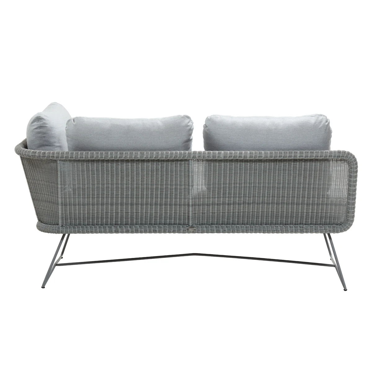 The sofa is made of Cane-line Weave, a weatherproof fibre made of polyethylene, which is ideal for outdoor use. The braided fibre sets summery accents and. A filigree aluminium frame gives the sofa a certain lightness. Coziness is provided by soft cushions for the seat and backrest. They are made of Cane-Line Natté fabric and have a QuickDry function. If you put the cushions up after a rain shower, the water can quickly run off. After one hour the cushions are completely dry and can be used again.