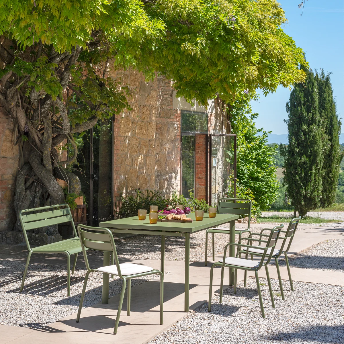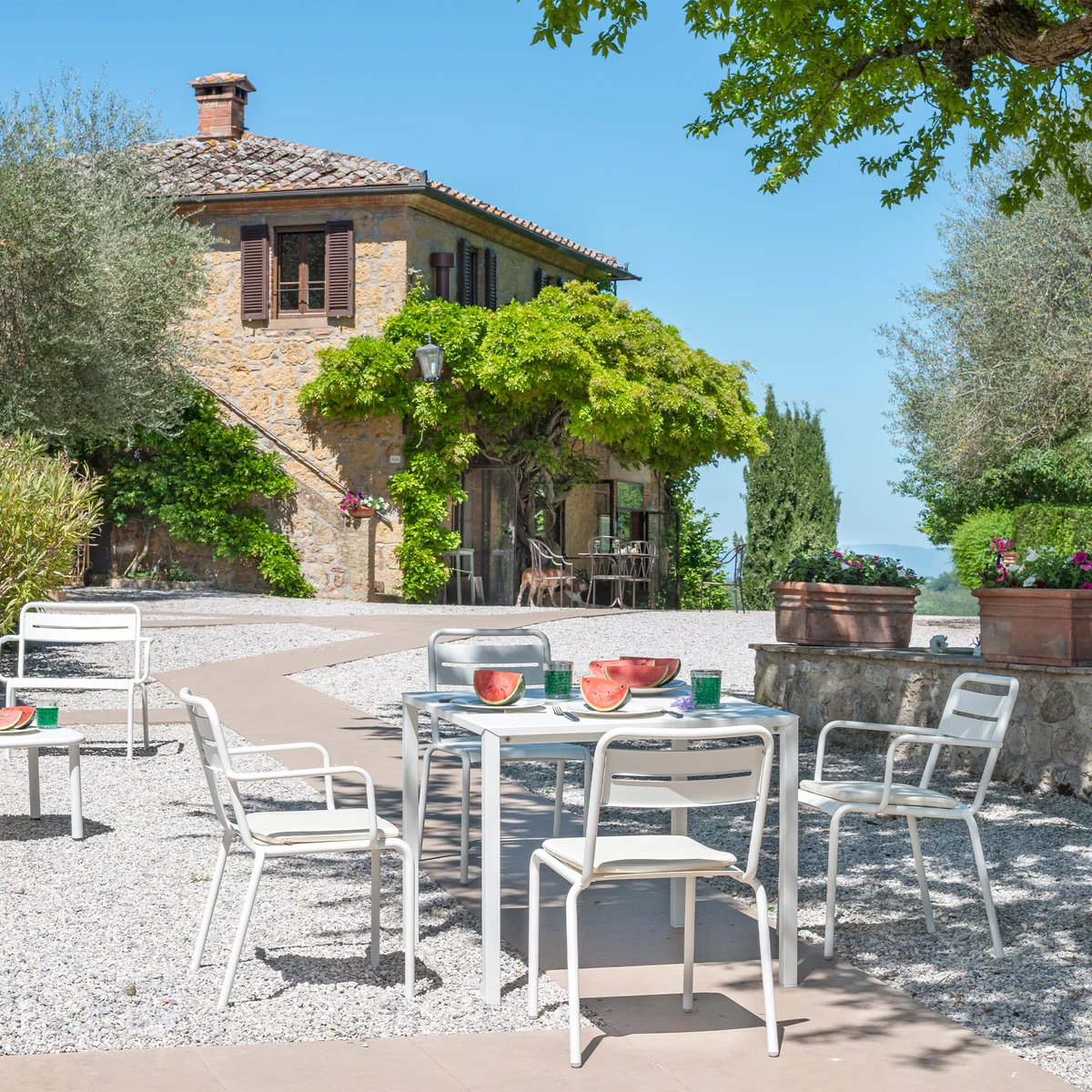 The chair is made of Star chair is made of steel, which is perfect for outdoor use. Balconies, terraces and gardens can be furnished with the chair, but its harmonious silhouette also makes it ideal for indoor use.