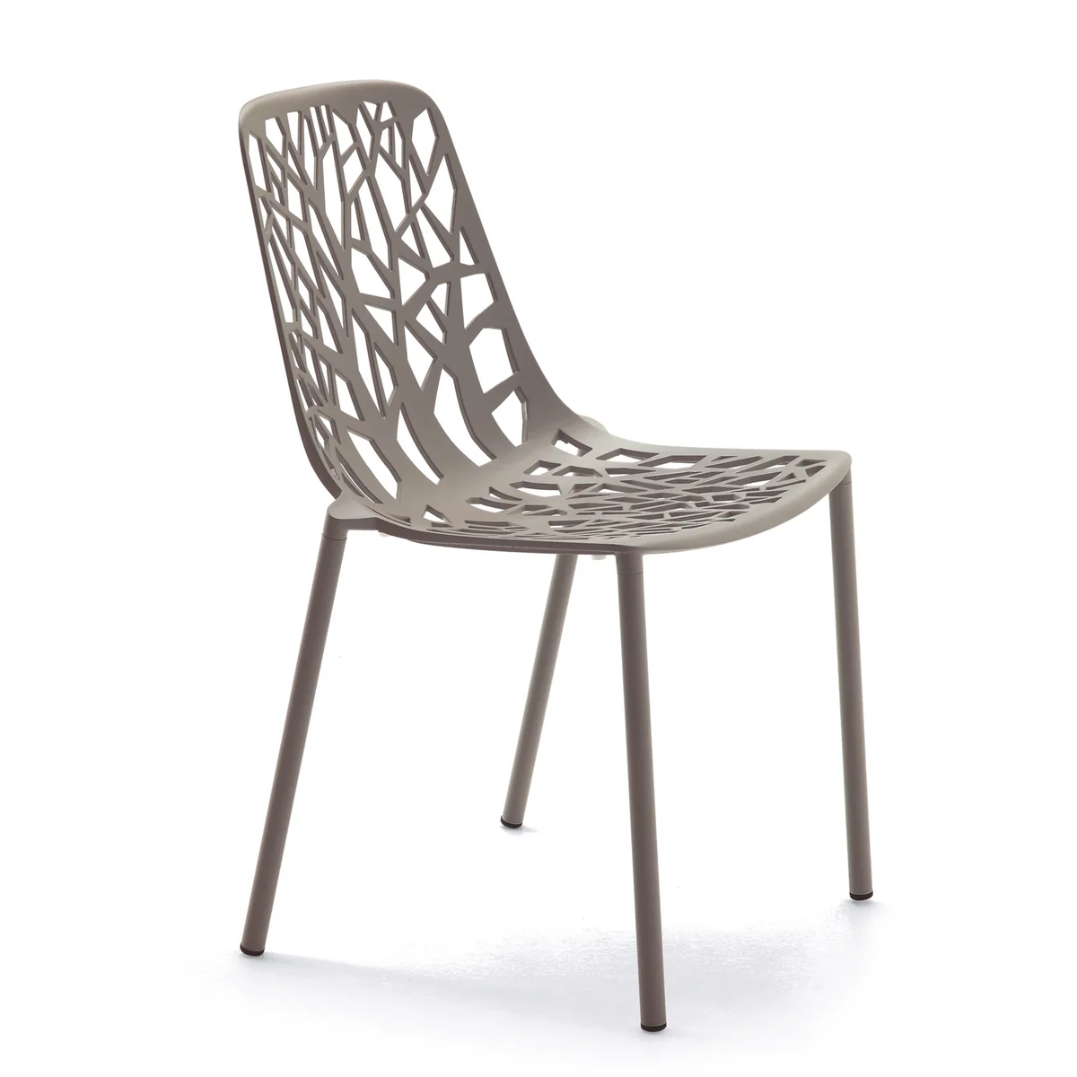 Forest is the name of the new chair series from the manufacturer Fast . The organic looking chair is available in different versions for indoor and outdoor use. The version offered here is ideally suited for indoor and outdoor use and is made of powder-coated aluminium. The chairs are stackable and thus space-saving to store. Forest convinces with high seating comfort and a distinctive design.