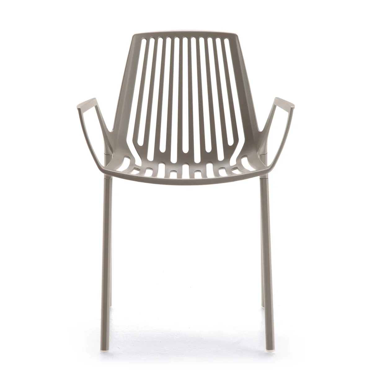 Thanks to the materials used, the furniture embodies a certain lightness not only visually: armrests as well as seat and backrest are made of die-cast aluminium. The legs are made of extruded aluminium. Thus the Rion chair from the Italian manufacturer Fast is predestined for outdoor use.
