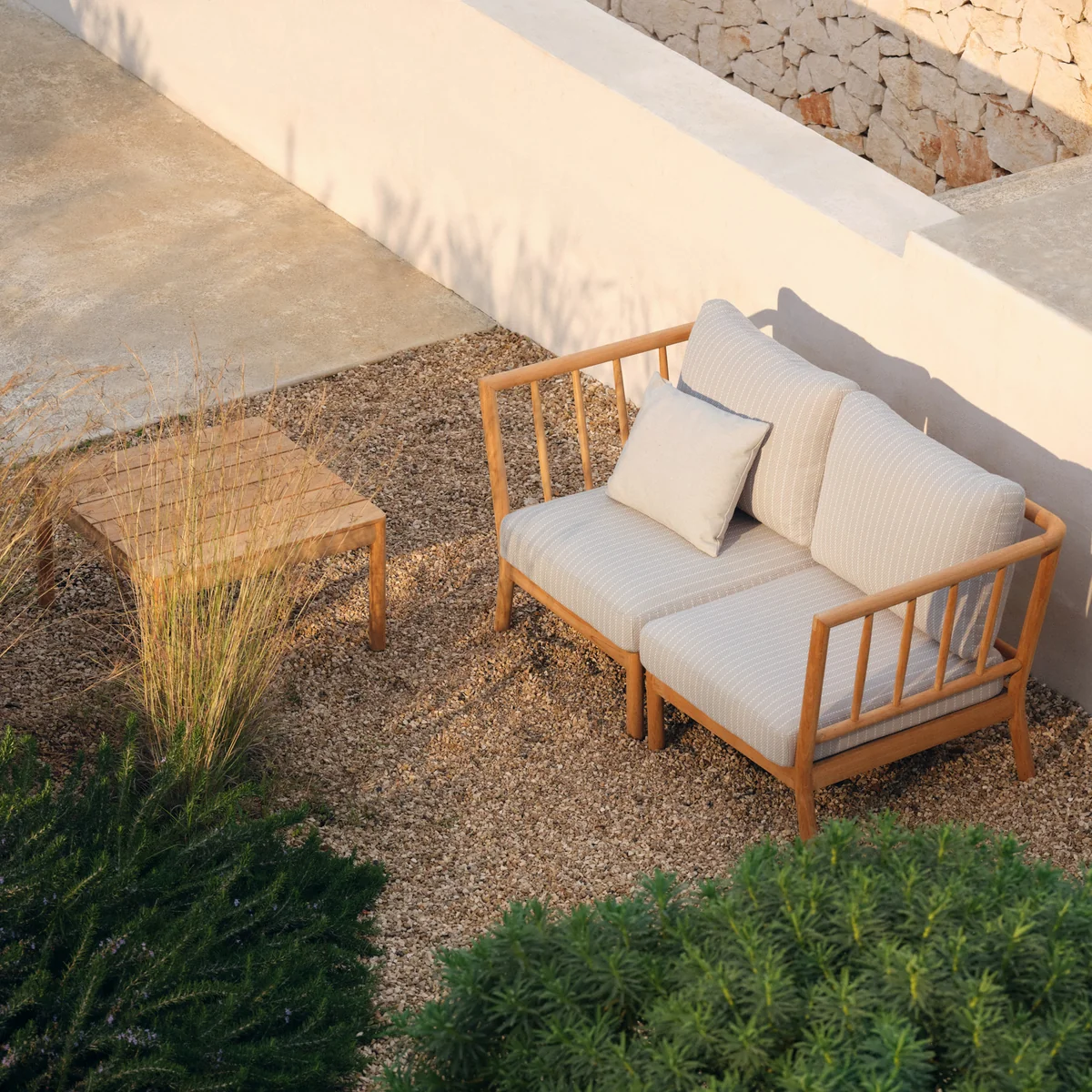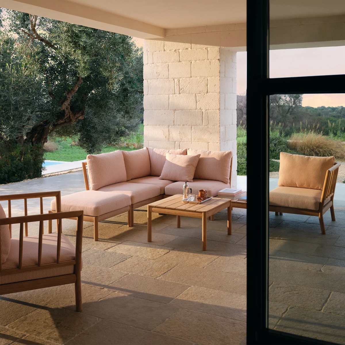 The modular Skagerak Tradition outdoor sofa, designed by Povl B. Eskildsen for Fritz Hansen, brings the simplicity and functionality of Danish design to the outdoors.