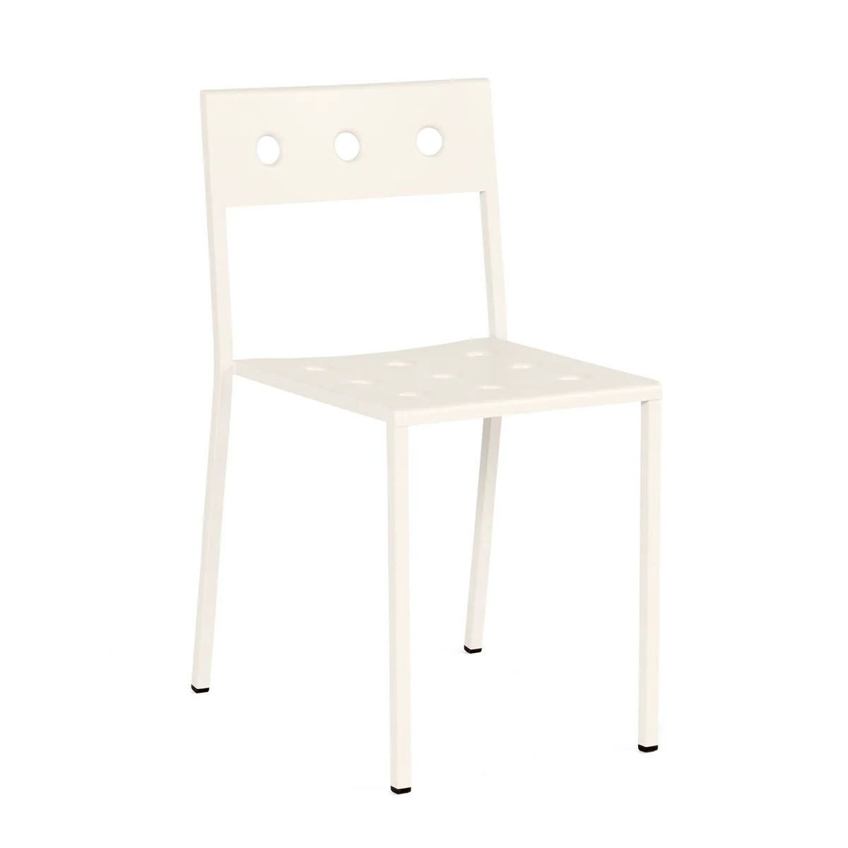 The Balcony chair designed by Ronan and Erwan Bouroullec for HAY is an elegant and functional outdoor dining chair. The wide, square design is given a softer look by the rounded seat and backrest. The holes in the seat and backrest give stability to the design and also provide a special expression. The Balcony Chair is made of powder-coated steel with a coating that guarantees resistance and durability, making it ideal for outdoor use.