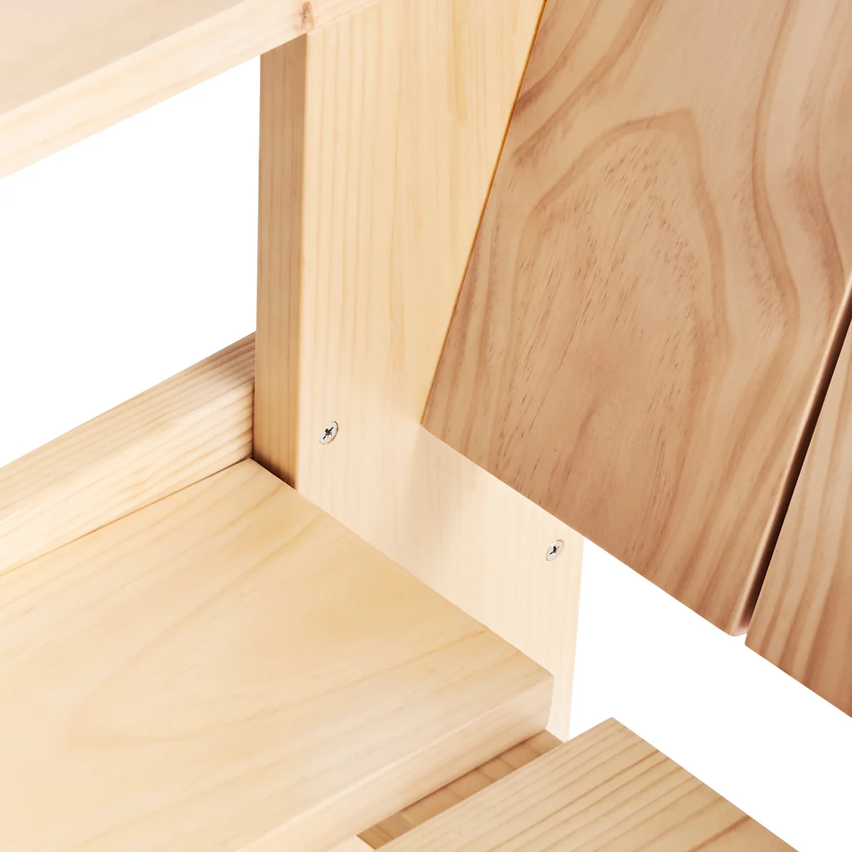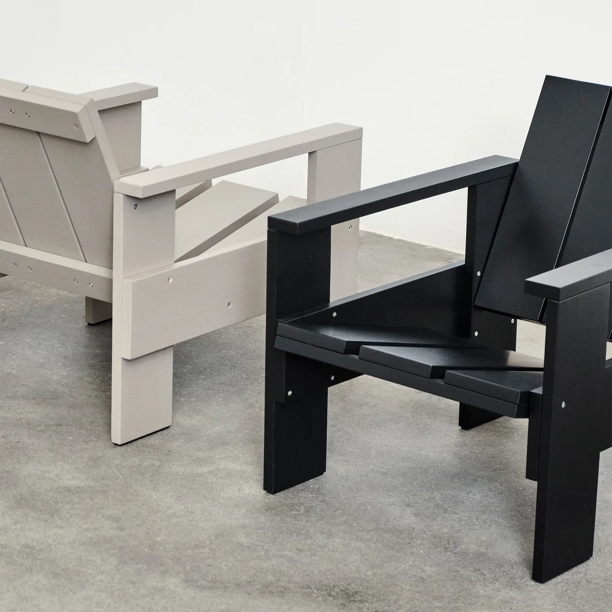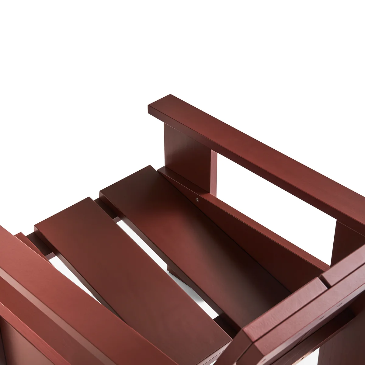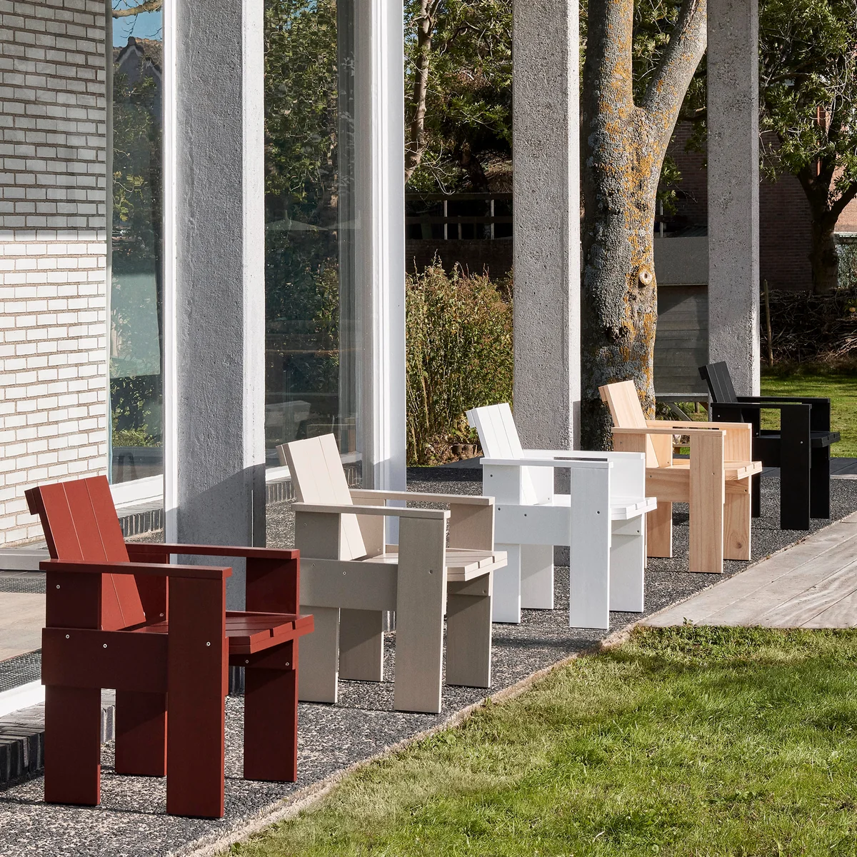 The Crate Lounge Chair from HAY is one of the classics that has been reissued. The Crate collection by Dutch architect and designer Gerrit Rietveld was created in 1934. The aim was to use surplus wooden crates for transportation. The Crate Lounge Chair was produced with a strong focus on the original design and has the same extremely precisely balanced proportions. The transparent construction allows for an optimized assembly process. The low elements, the gently sloping backrest and the seat with the supporting armrests lend the chair its simplicity. Crate Lounge Chair offers comfort without taking up too much space. It is made of solid pine wood and thanks to its water-based lacquer finish, the lounge chair can be used both indoors and outdoors. Available in different colors.