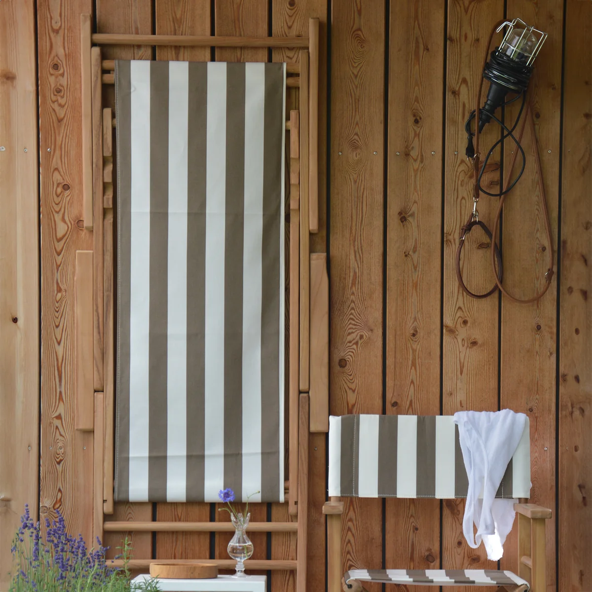 The Jan Kurtz Maxx Deckchair takes up the look of the classic beach chair with its wooden frame and cover. The deck chair with a teak base and covers in different materials, colors and patterns is a practical companion for the summer.