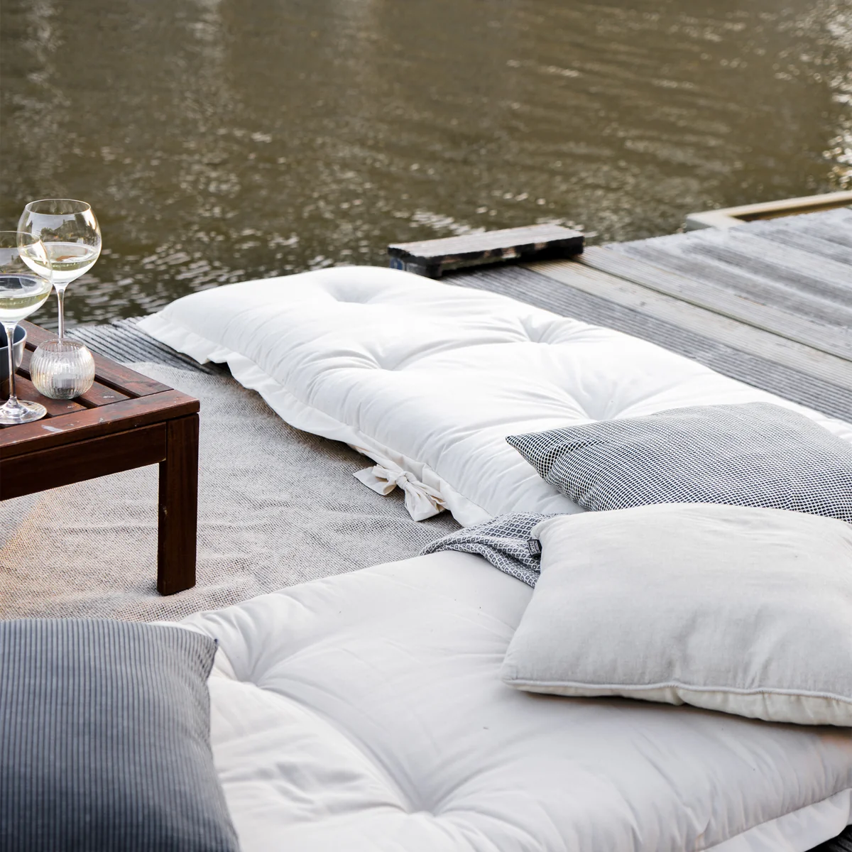 Sit and Sleep OUT by Karup Design is a versatile piece of upholstered furniture that can be used in various ways indoors and outdoors. The softly padded mattress is covered with a resistant polyacrylic fabric from Dralon, which is light-, dirt- and water-repellent. So it can be used without problems in the garden or on the terrace, should be brought however with rain into the dry one.