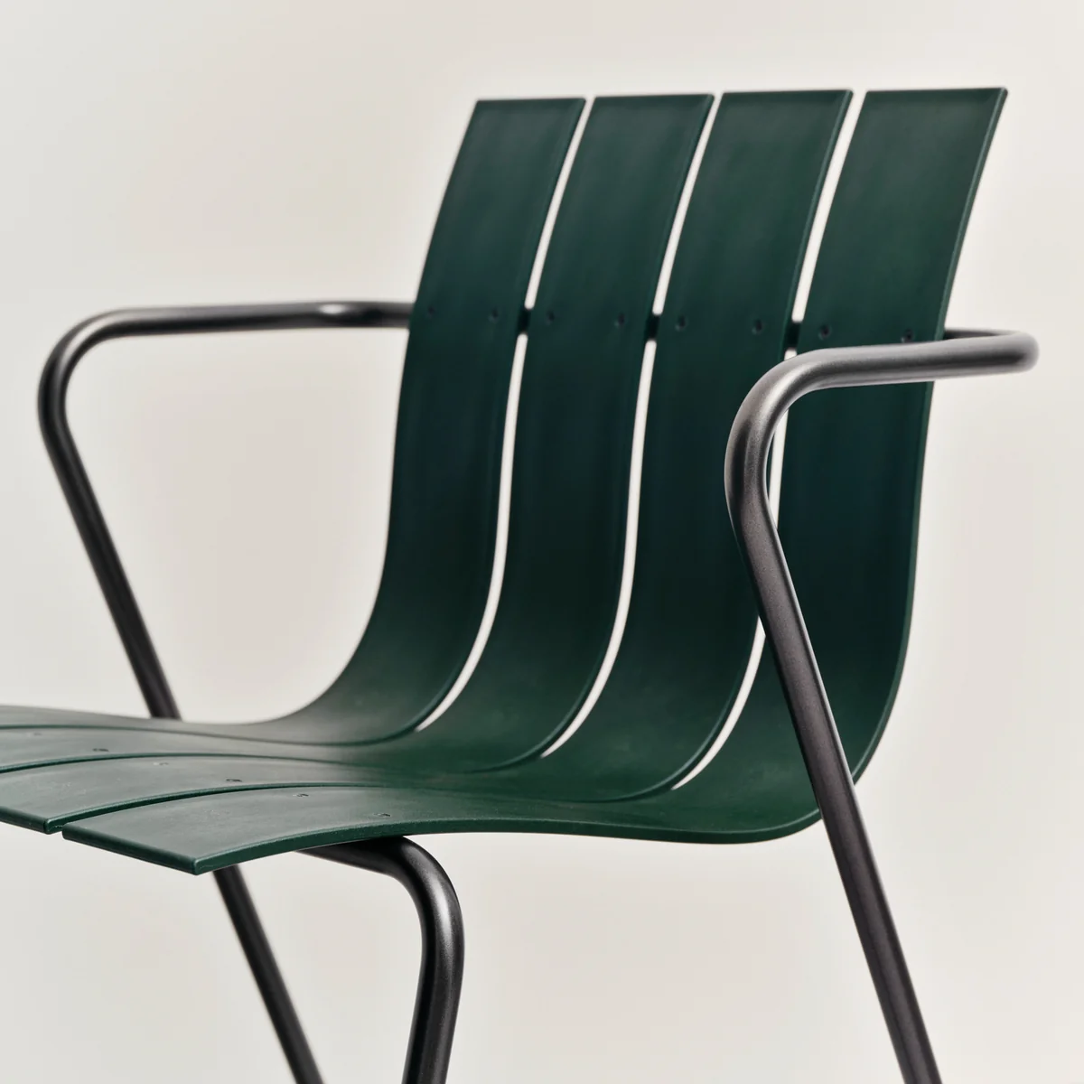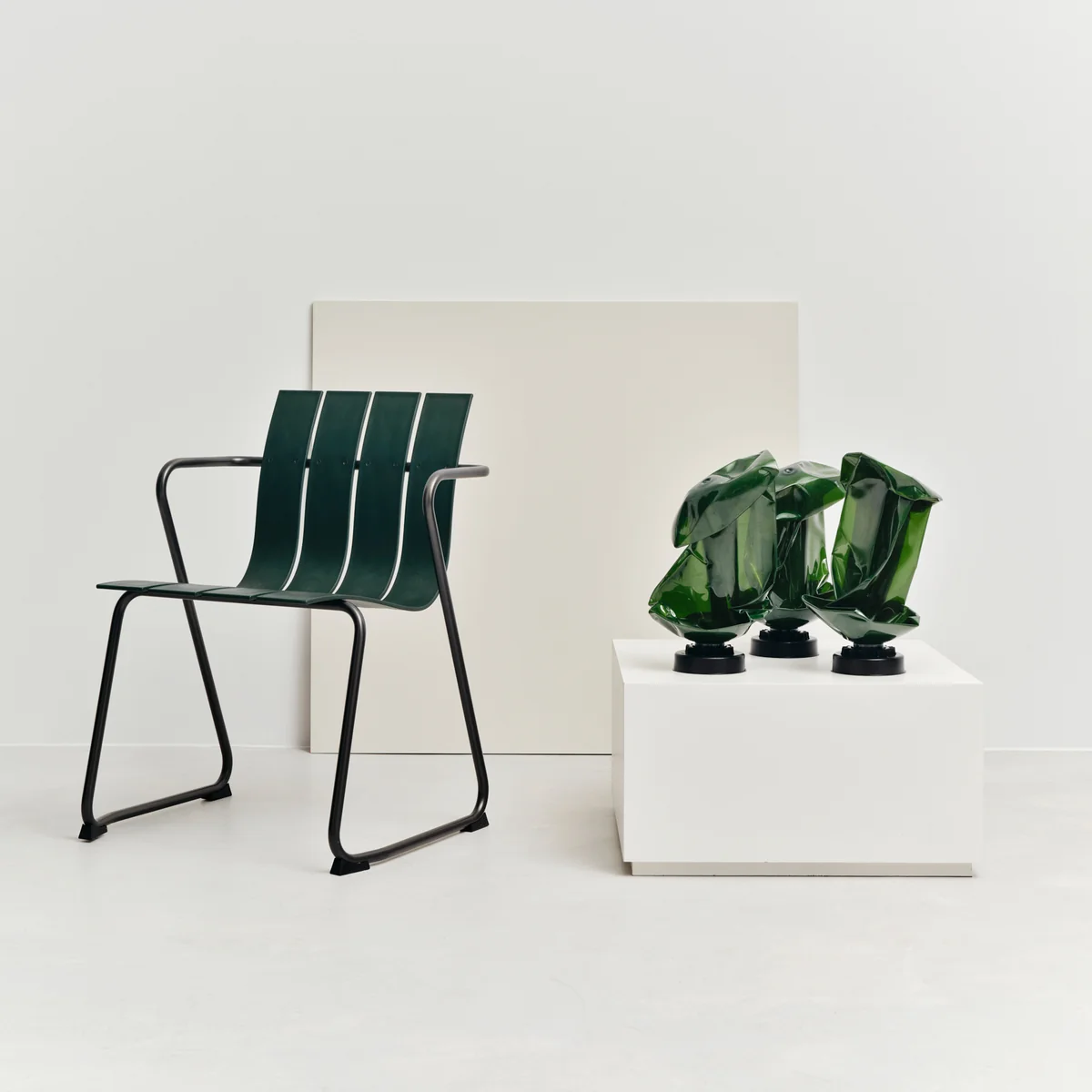 Mater uses recycled plastic for the chair from Plastix, one of the world's only mechanical recycling companies. Plastix transforms discarded fishing nets, trawls, ropes and other products from plastic waste into valuable recycled plastic raw material called "Green Plastics". Approximately 960 grams of marine plastic waste is used to make one chair.
