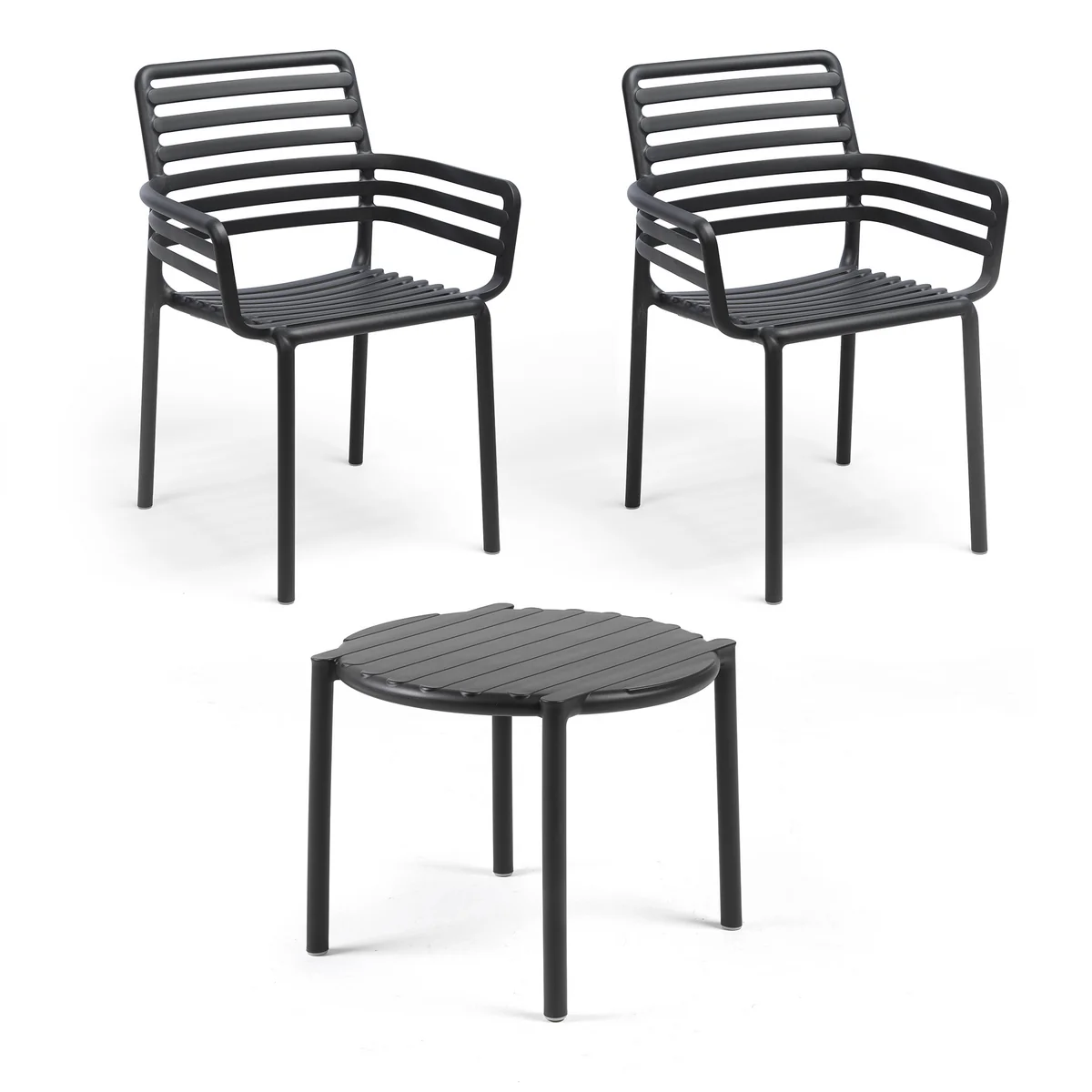 The Doga side table has a contemporary, newly designed stave theme that perfectly complements the outdoor chairs from Nardi . The small, one-piece table made of glass-reinforced plastic has a round table top with a fresh and light design. The table is handy, stackable and easy to disinfect. It is completely recyclable.